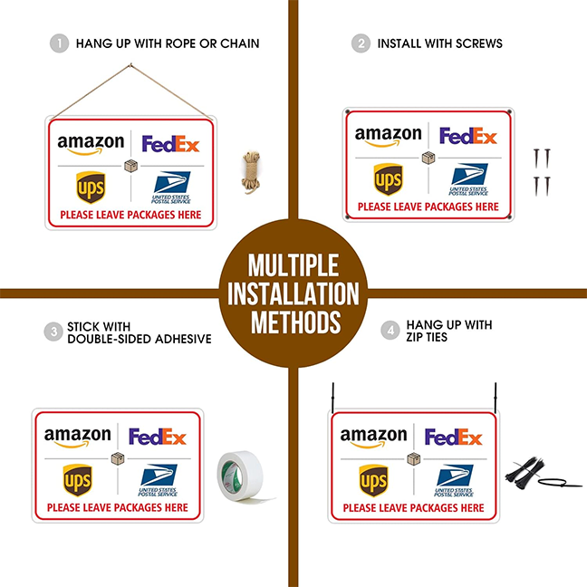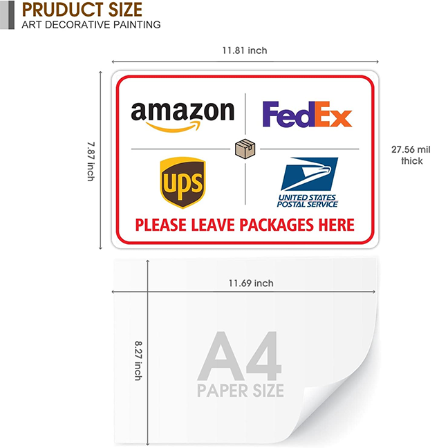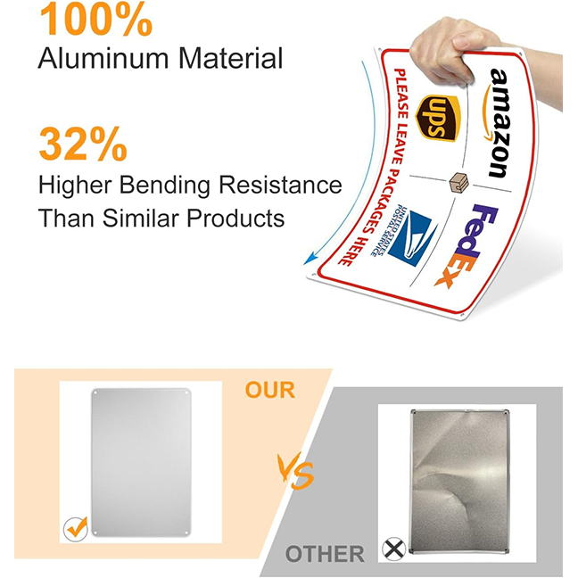 Letrero de Entrega de Paquetes de Aluminio Resistente a la Oxidación, Letrero para Puerta Principal/Porche Resistente a la Intemperie para UPS/FedEx/USPS
