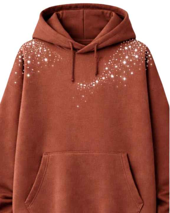 Sudadera con capucha para hombre, color naranja óxido, con pedrería, extragrande, de forro polar grueso, con bolsillo canguro, estilo streetwear personalizado, de fabricante