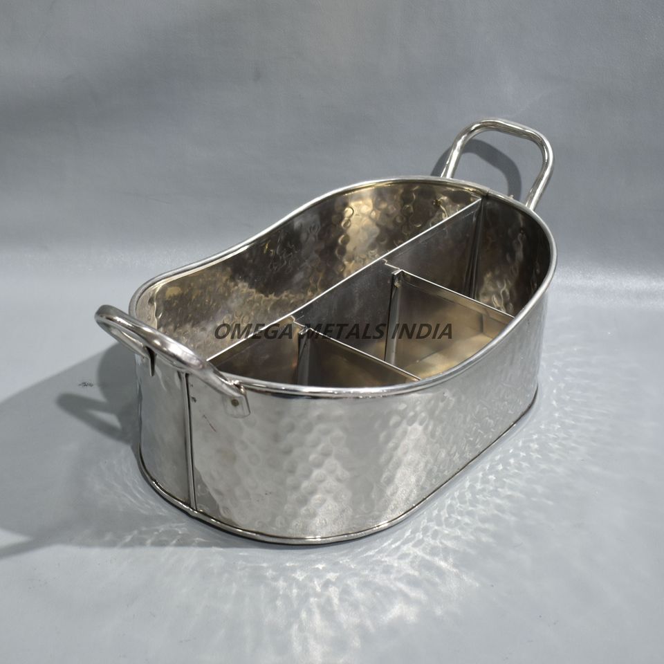 Cubo de hielo de acero inoxidable martillado resistente al óxido, enfriador de vino para bebidas ovalado para fiestas, hoteles y cenas al aire libre con asas