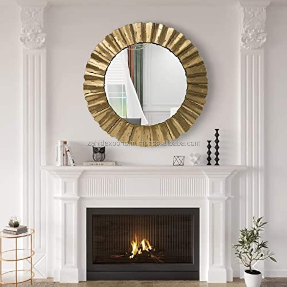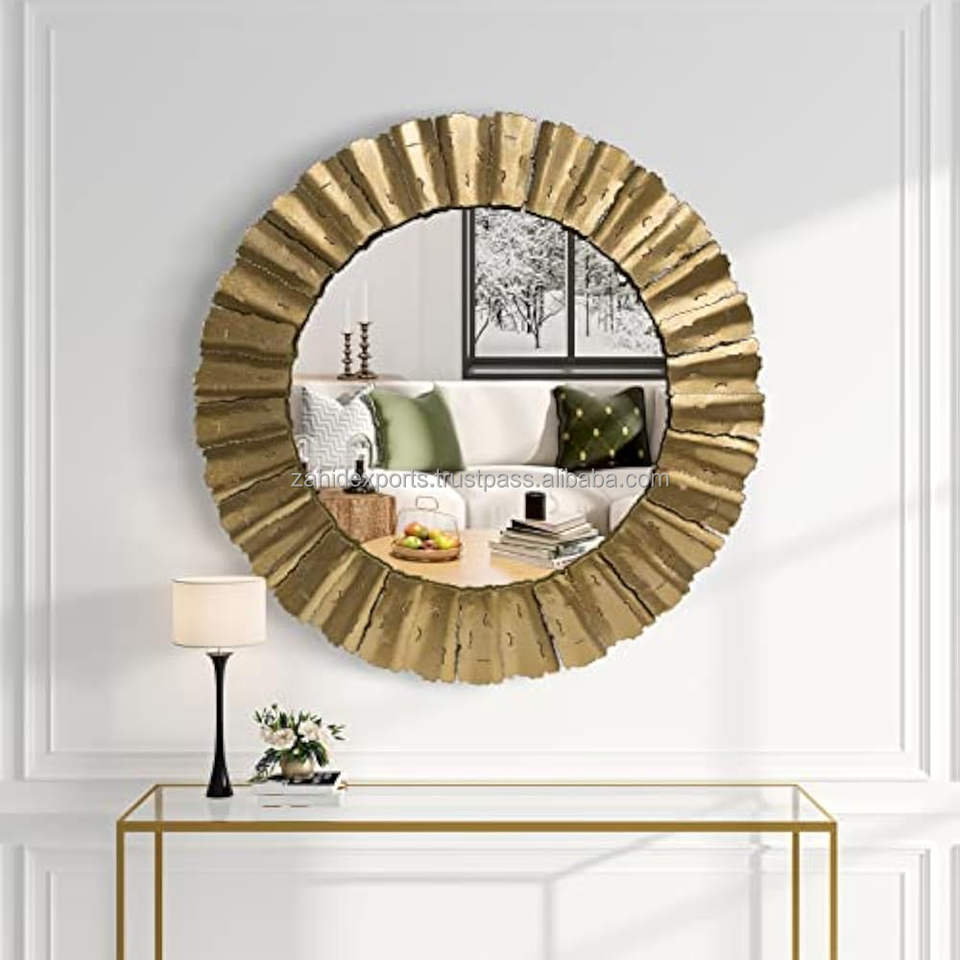 Espejo de Pared de Metal de Alta Calidad Resistente al Óxido para Decoración de Sala de Estar, Espejo Decorativo Redondo de Vidrio para el Hogar