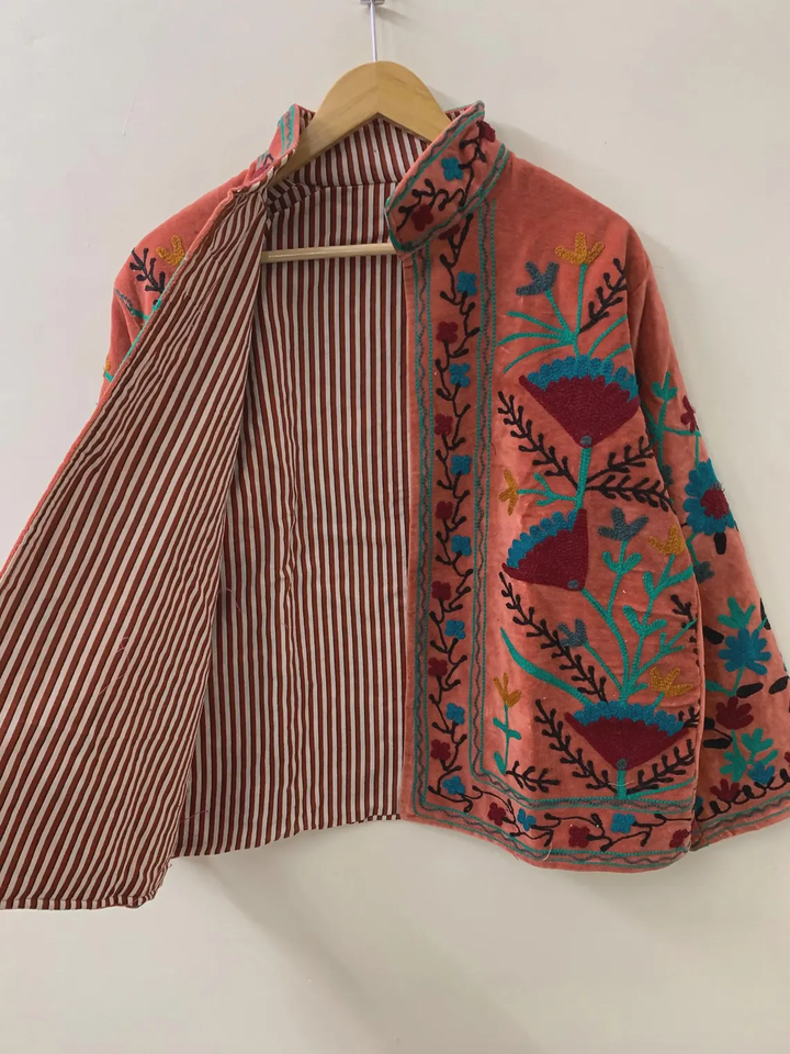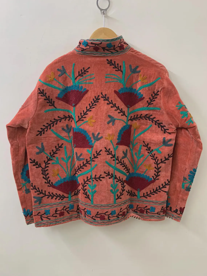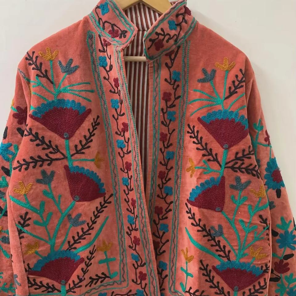 Rust Suzani bordado terciopelo Boho chaqueta Vintage Boho abrigo Unisex chaqueta de invierno étnico Chic prendas de vestir exteriores