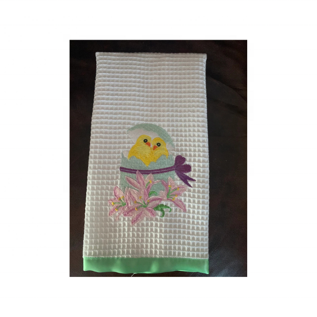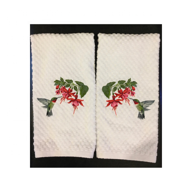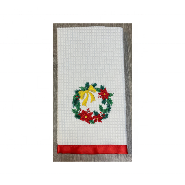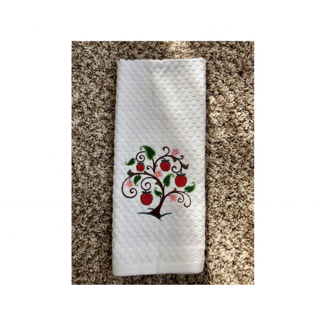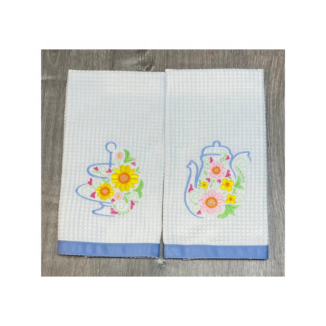 Tetera de lino rústica de 19x29 pulgadas, toallas de cocina bordadas, 100% algodón, 210 GSM GOTS, certificado, nuevo estilo, lazo colgante elegante