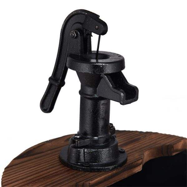 Fuente de Agua Rústica de 2 Niveles en Forma de Barril para Patio o Jardín, con Bomba Manual, Hecha de Madera de Abeto Resistente