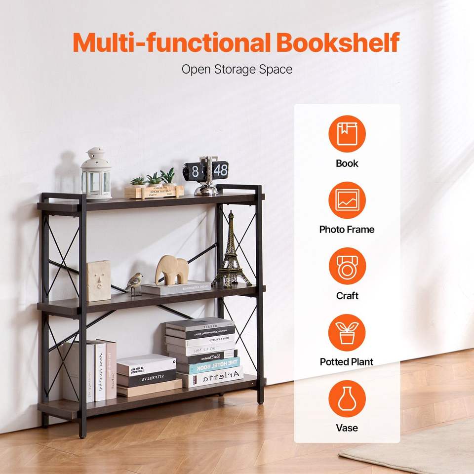 Estantería rústica de metal de 3 niveles para sala de estar, dormitorio y oficina, estanterías y estanterías