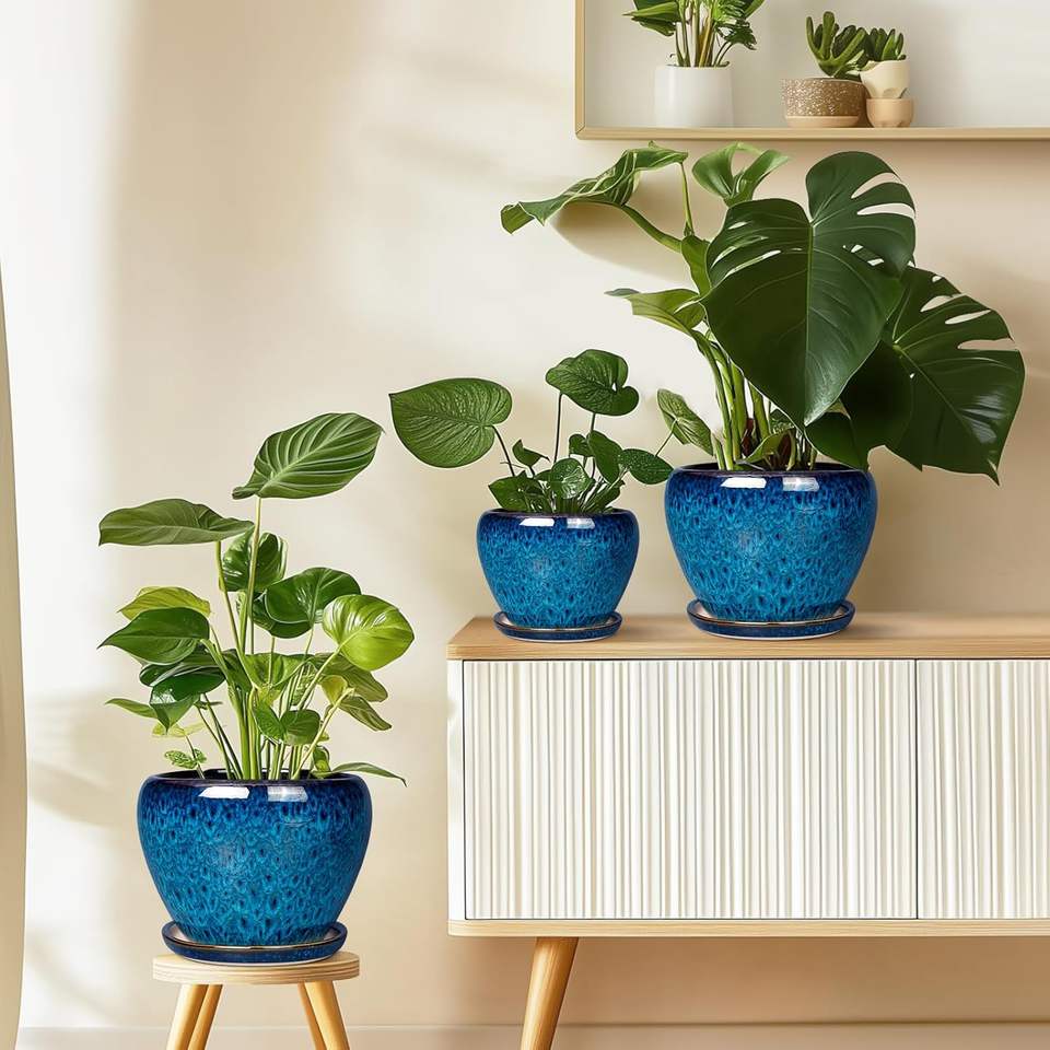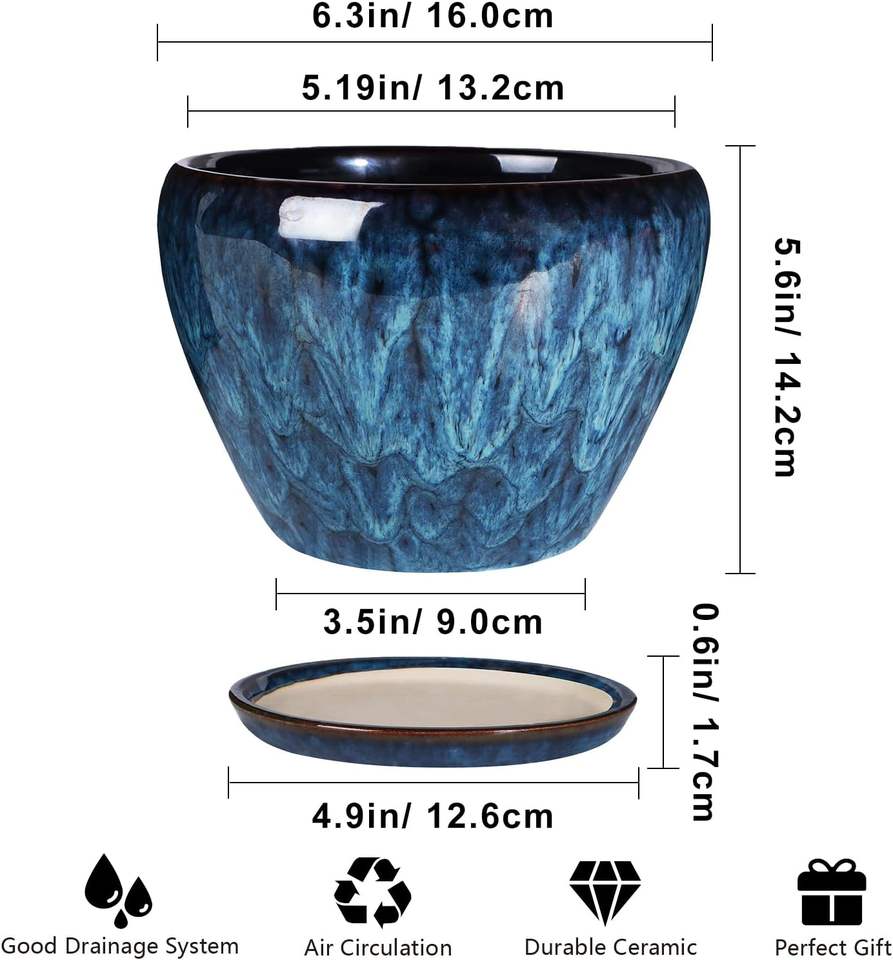 Maceta Rústica de Cerámica Esmaltada de 4 Pulgadas, Ligera (2 kg), con Orificio de Drenaje, Duradera, Ecológica, para Suculentas y Cactus, Estilo Rústico