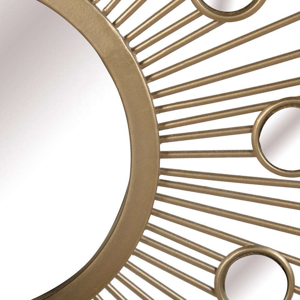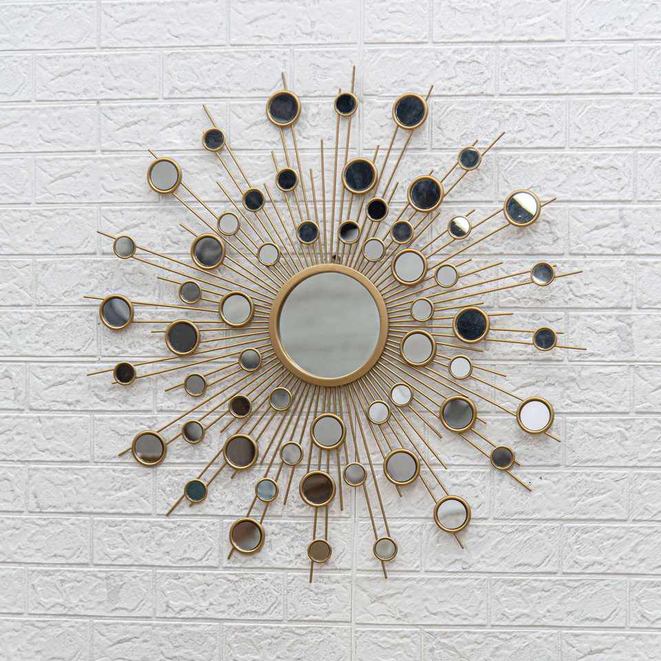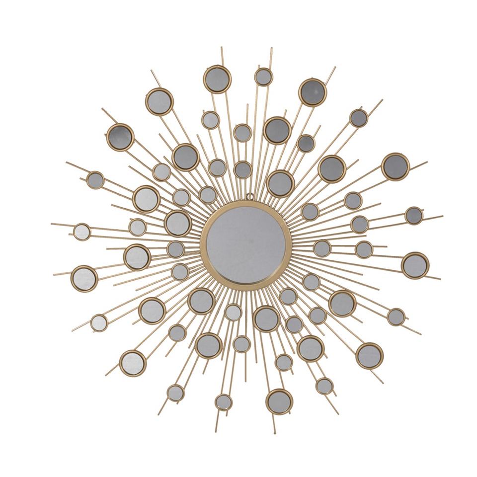 Espejo Redondo de Pared con Marco Metálico en Forma de Sol, Diseño Rústico Antiguo, Acabado Dorado Resistente