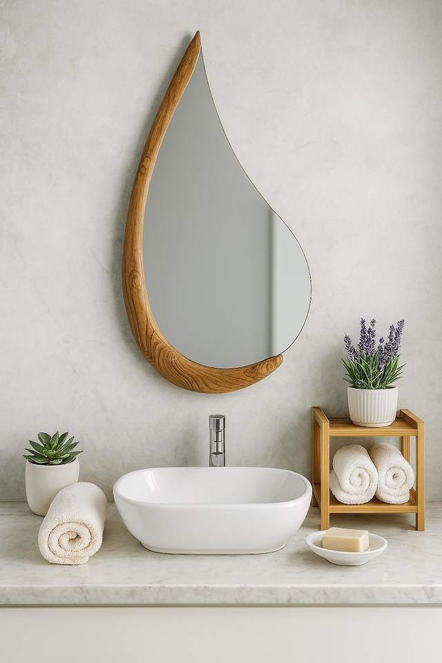 Rústico asimétrico lágrima hecho a mano de madera respetuoso con el medio ambiente espejo de pared Irregular redondo decorativo Art Deco