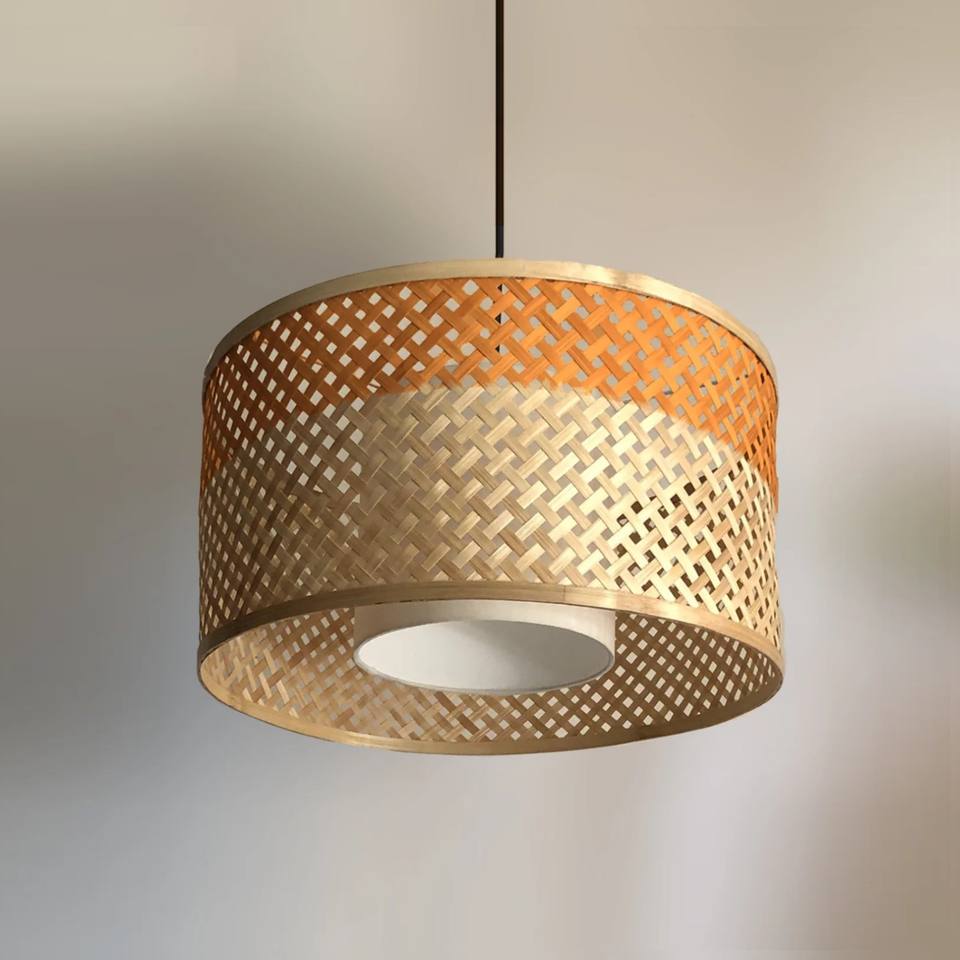 Pantalla de Lámpara Colgante Rústica de Bambú Hecha a Mano, Ecológica, Diseño Moderno para Cocina, Comedor y Restaurantes