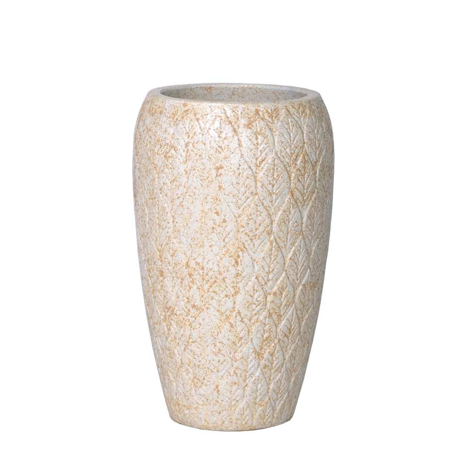 Maceta de Cerámica Rústica Beige con Relieve para Espacios Interiores Modernos y Minimalistas