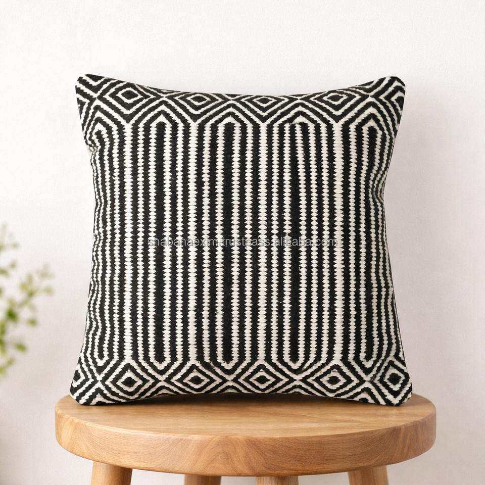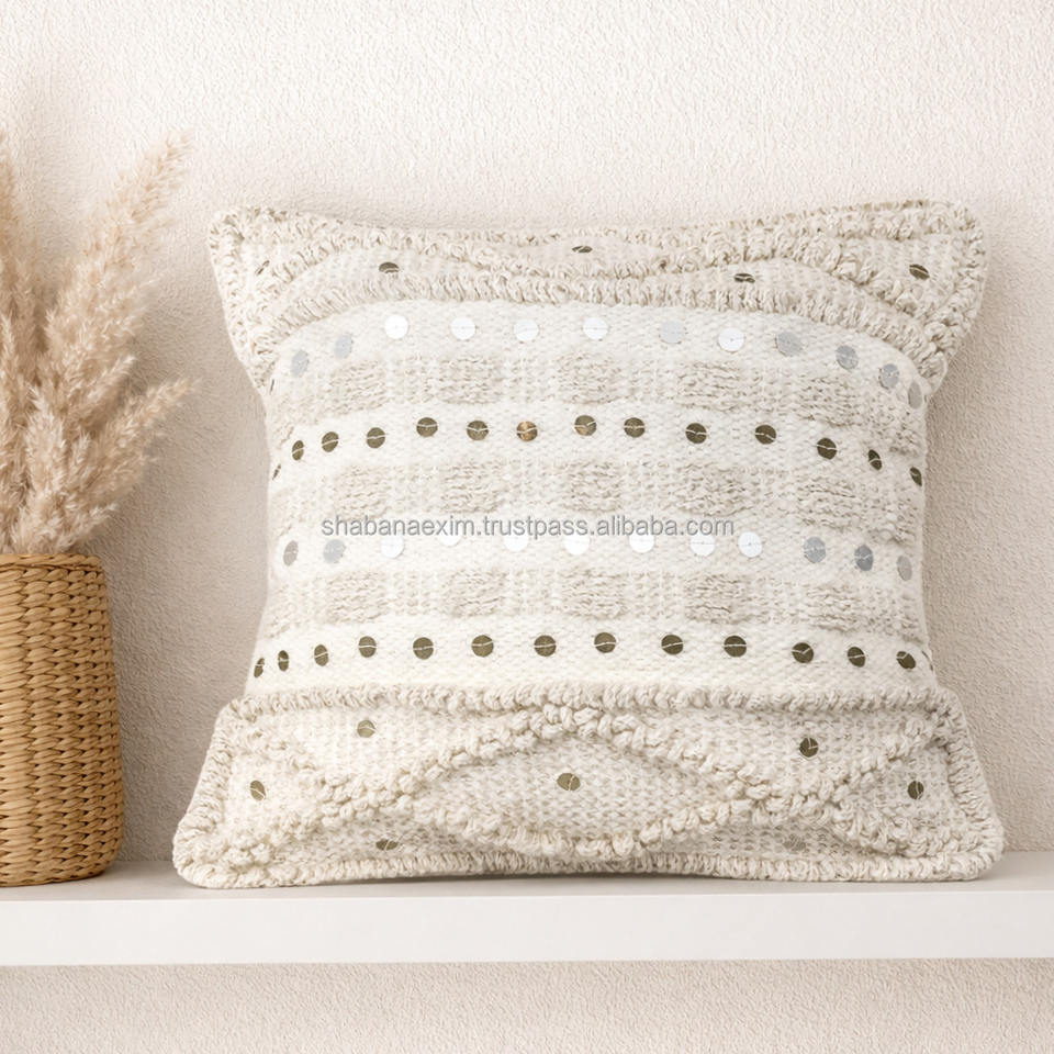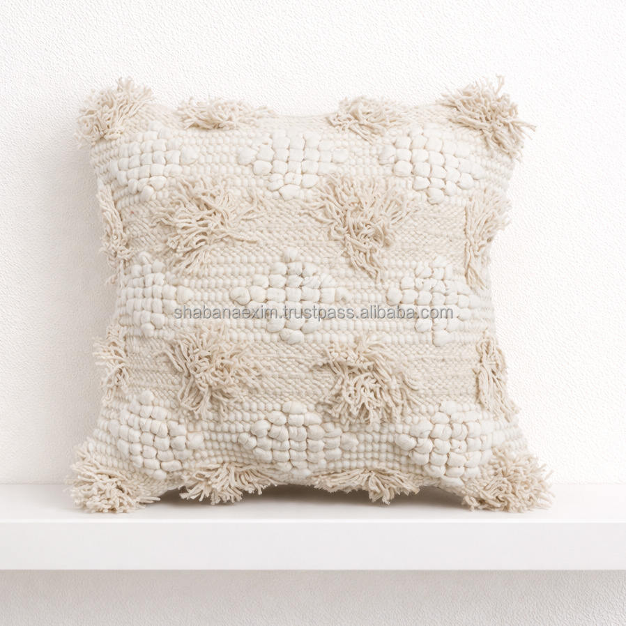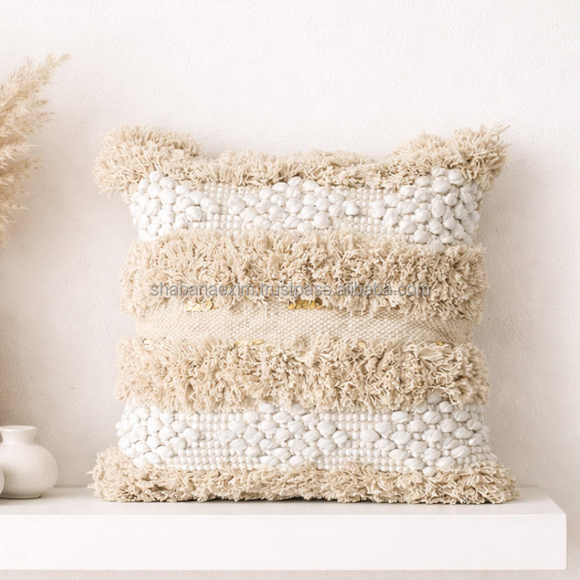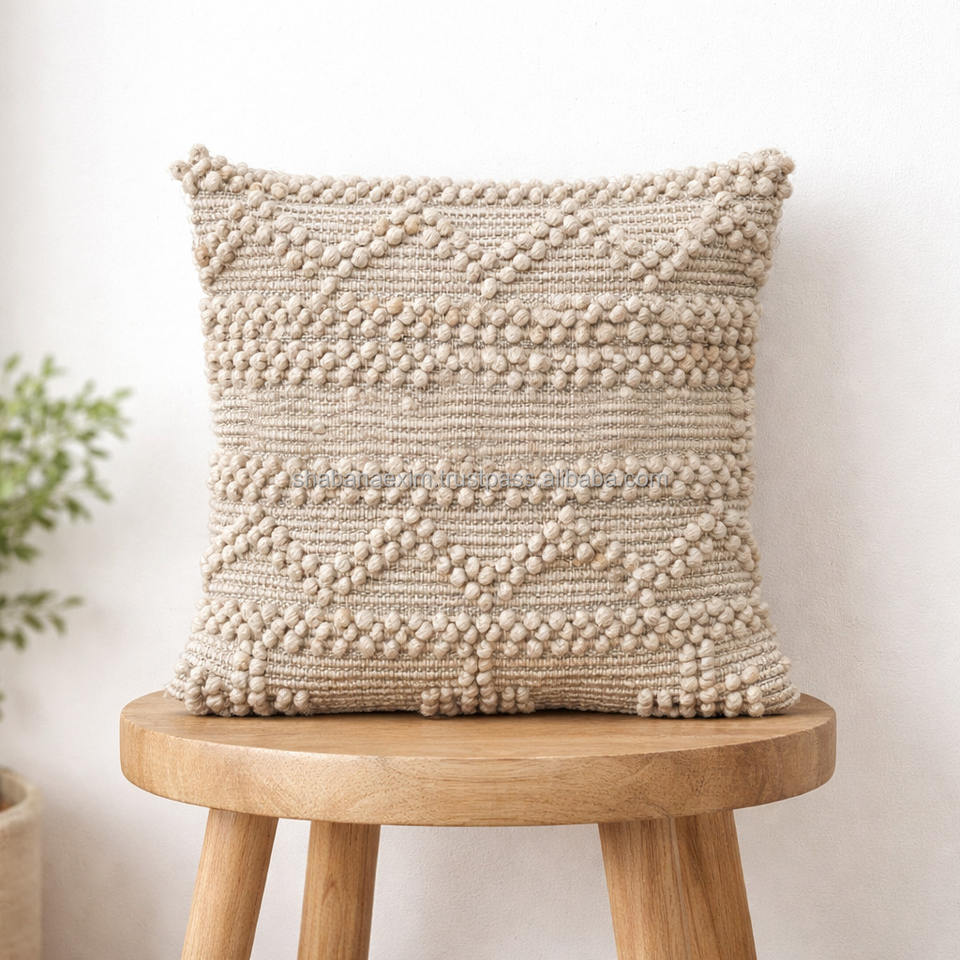 Funda de Almohada Rústica Boho, Hecha a Mano en Algodón con Tejido Texturizado, Cierre de Cremallera Resistente, para Decoración del Hogar, Estilo Boho Chic