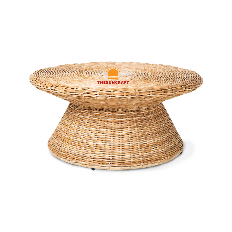 Mesa de centro de mimbre redonda marrón Vintage bohemio rústico mesa de centro de mimbre estilo granja tejida a mano para el hogar y el Hotel