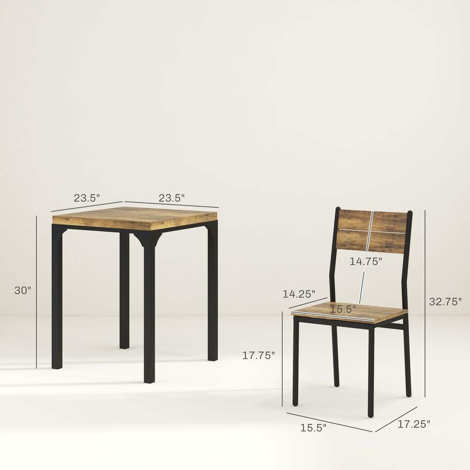 Juego de Comedor Rústico Marrón de 3 Piezas para Espacios Pequeños, Ideal para Desayunador y Apartamentos, Ahorra Espacio y con Estilo