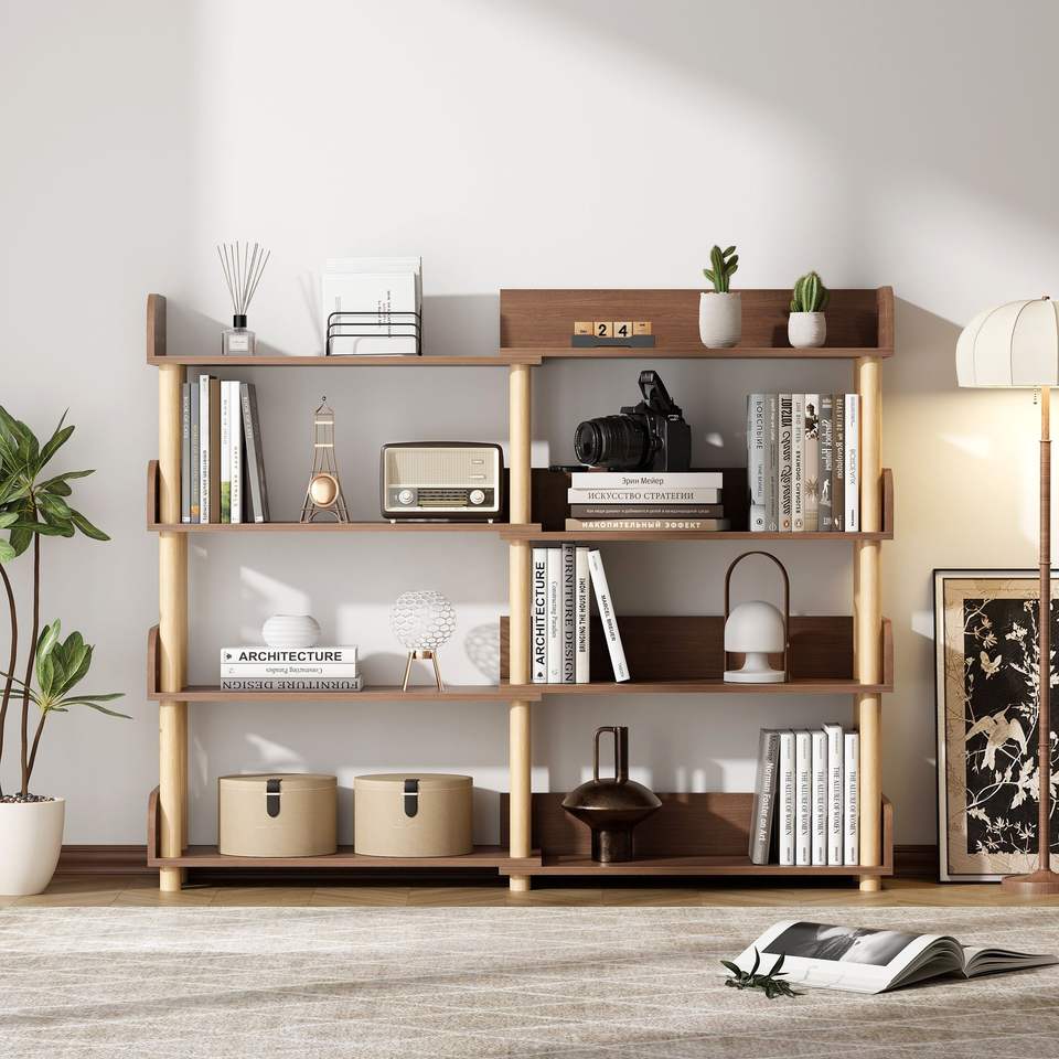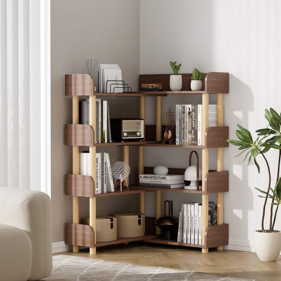 Librero de Madera Rústico Marrón de 4 Niveles, Retráctil y Giratorio, para Esquina, para Almacenamiento de CDs, Películas y Libros