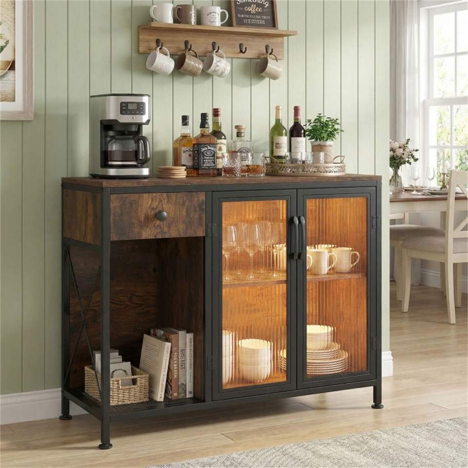 Mesa de Centro Rústica Marrón con Cajón de Almacenamiento, LED RGB y Tomacorriente, Mueble Elegante para el Hogar