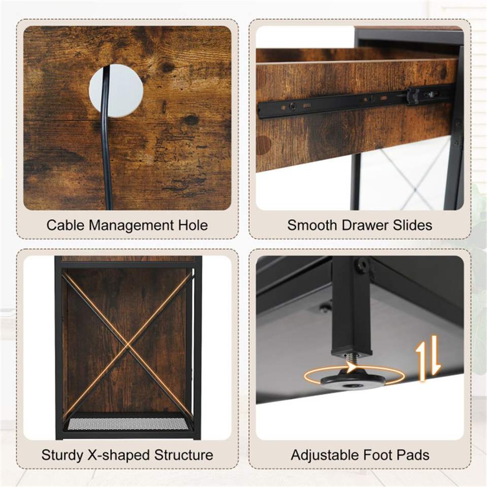 Mesa de Centro Rústica Marrón con Cajón de Almacenamiento, LED RGB y Tomacorriente, Mueble Elegante para el Hogar