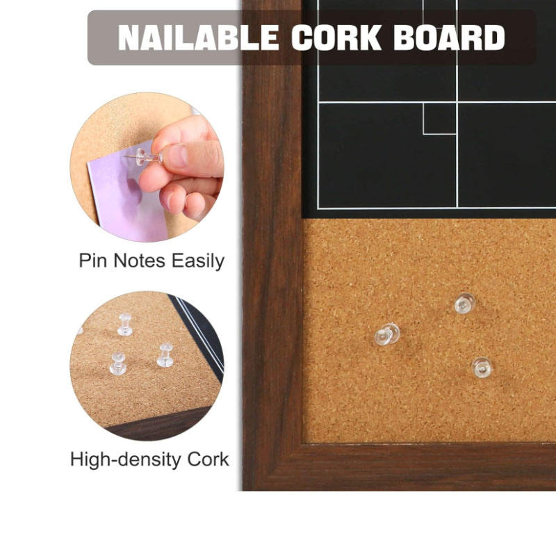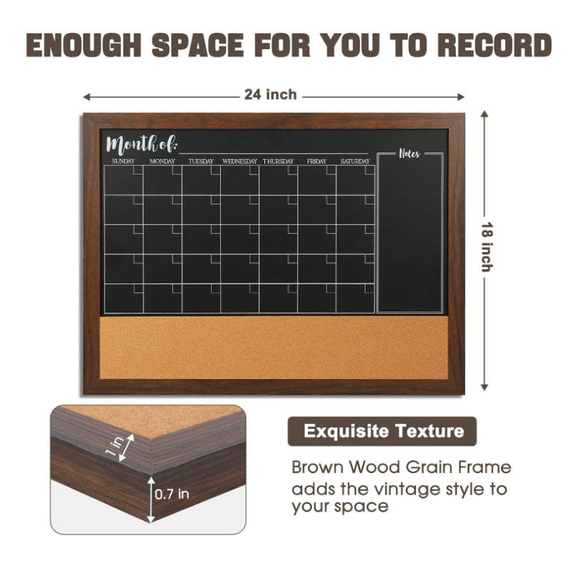 Marco marrón rústico 18 "X 24" Tablón de anuncios Calendario magnético Pizarra Calendario Corkboard Combo