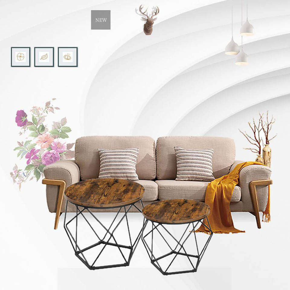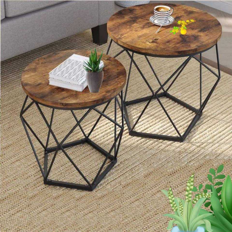 Mesa de Centro Rústica con Tapa de Madera Marrón y Base Metálica Resistente para Dormitorio y Sala de Estar