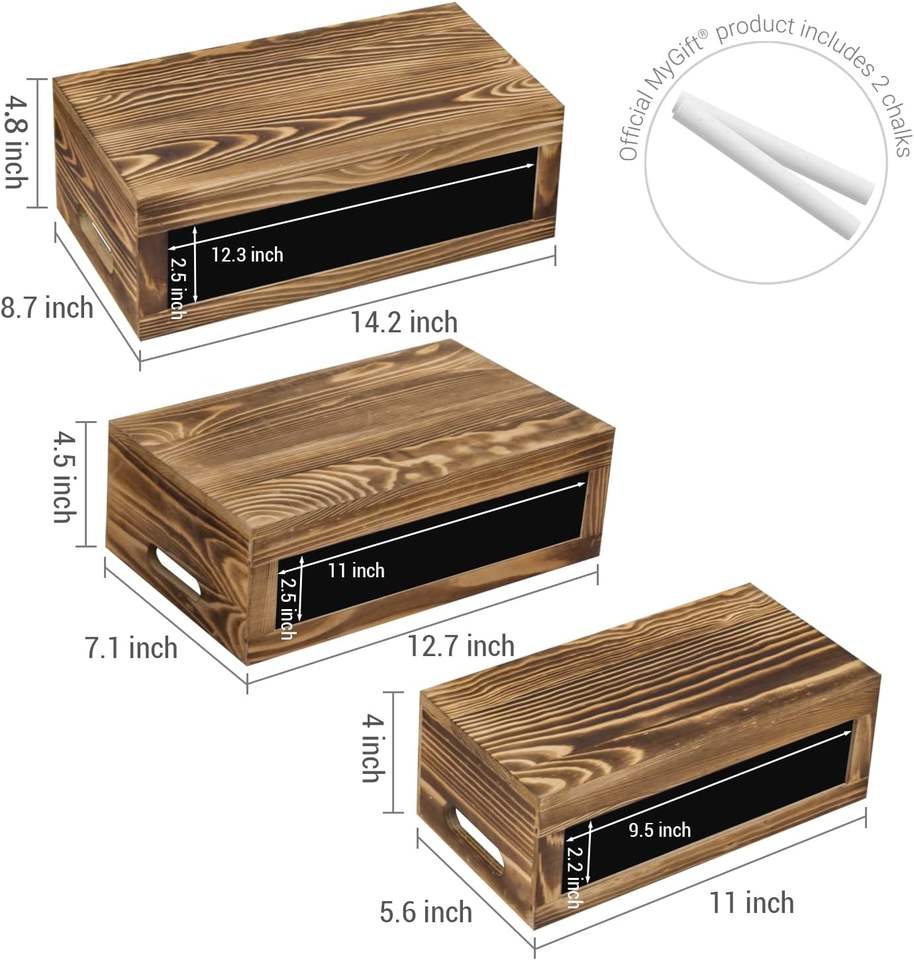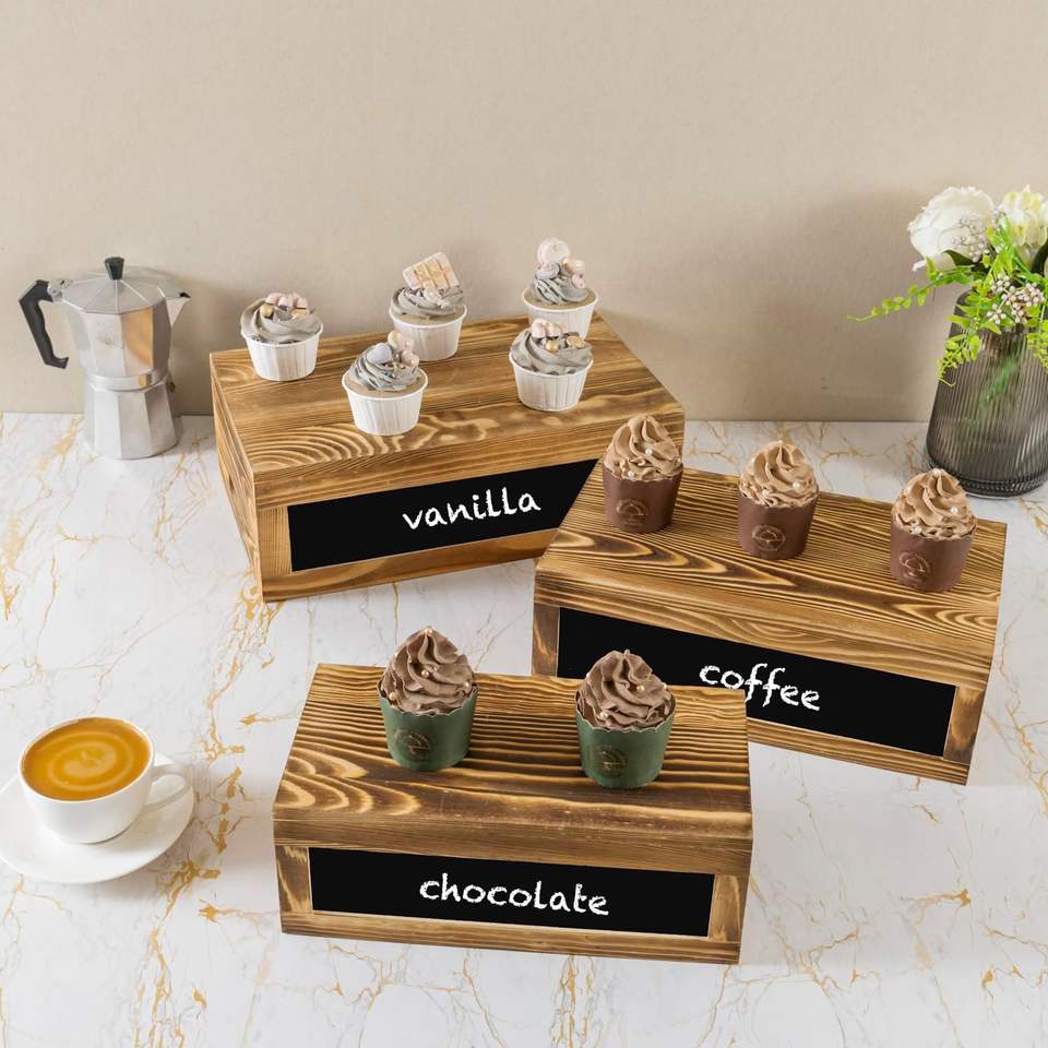 Caja Rectangular de anidación de madera quemada rústica, soportes de exhibición de pasteles con etiquetas de pizarra, elevadores de madera apilables para servir postres