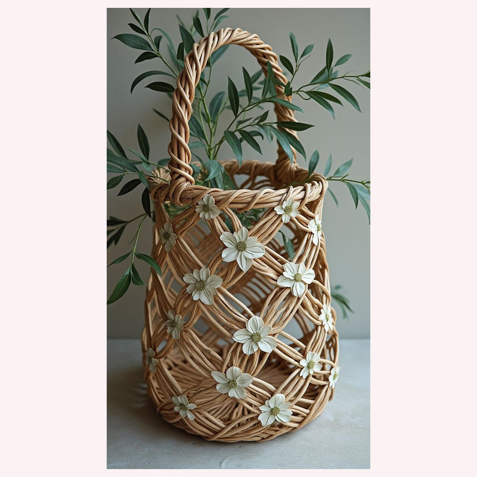 Rústico Calm Jarrón tejido a mano Botanical Rattan & Seagrass Flower Holder para Wabi-Sabi y Organic Spaces