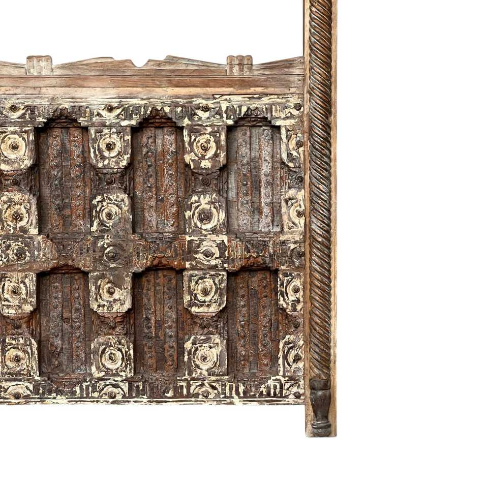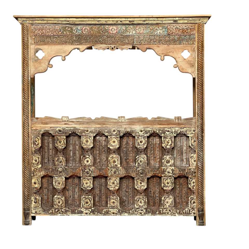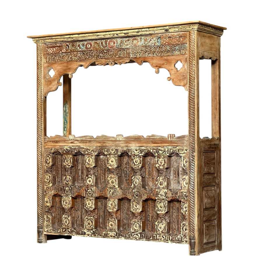 Barra de Bar Rústica Tallada con Puerta con Paneles y Toldo Floral Hechos de Madera