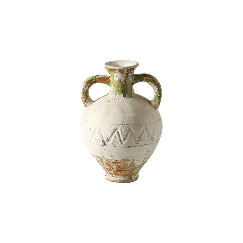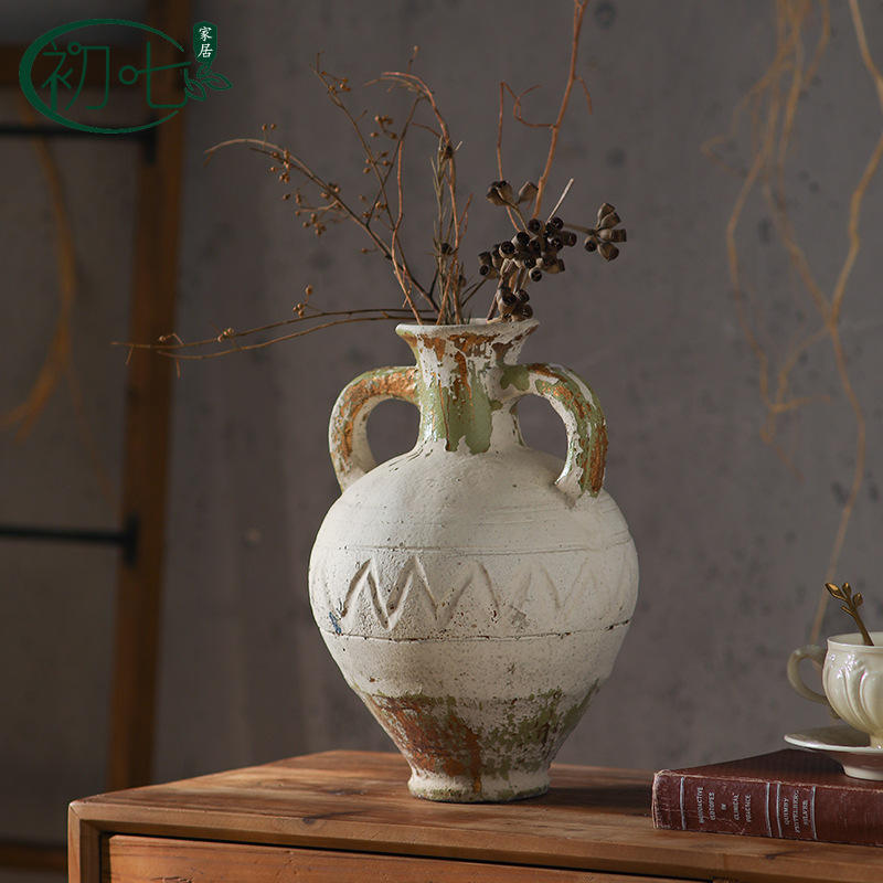 Jarrón de cerámica rústico con asas, maceta decorativa hecha a mano para sala de estar, arreglo de flores secas, estilo vintage