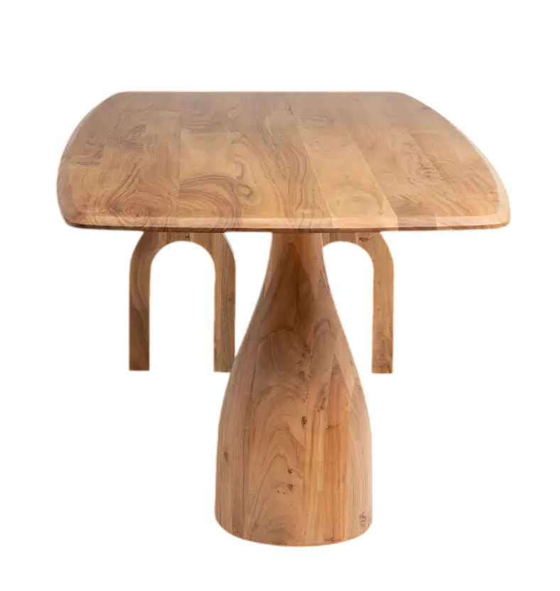 Mesa de Comedor Rústica de Madera de Acacia Maciza de Primera Calidad, Diseño Único con Dos Patas en Forma de Horquilla, Amplio Espacio para 6 a 8 Personas