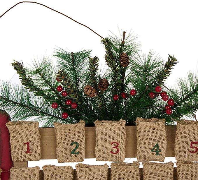 Calendario de Adviento de Navidad rústico para niños 26,89 "L hierro/camión iluminado de madera cuenta regresiva decoración de pared decoración de Navidad interior