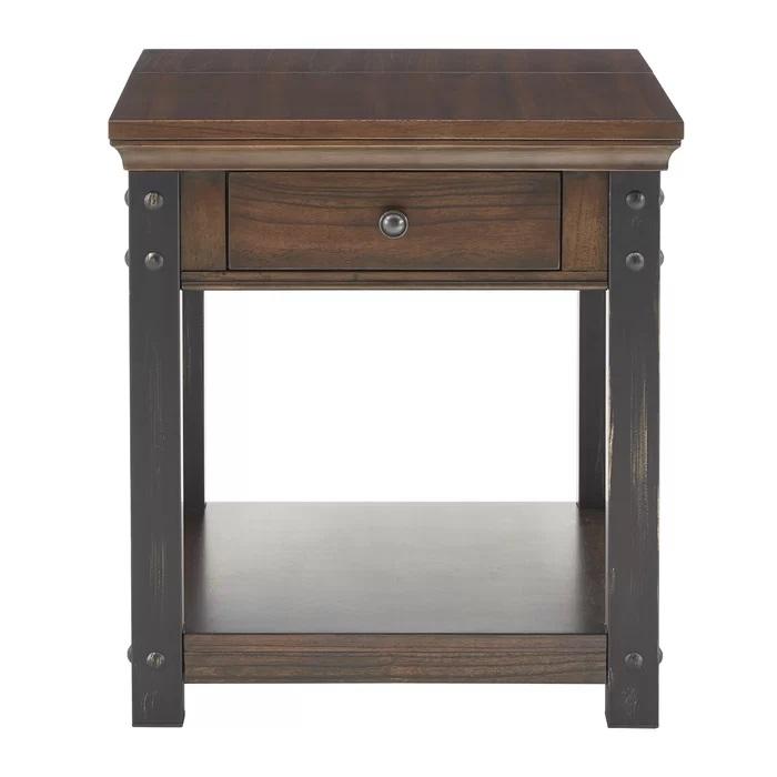 Mesita de noche personalizada clásica rústica con cajón de estantería de hierro de madera maciza Natural de alta calidad mesas de centro de alta calidad