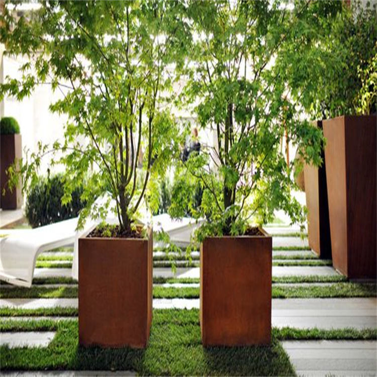 Maceta Rústica de Acero Corten - Adorno de Jardín Moderno y Contemporáneo para Exteriores, Resistente a la Intemperie
