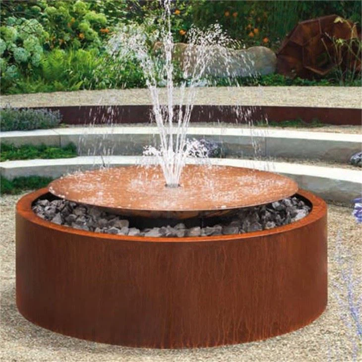 Fuente de Cascada Rústica de Acero Corten - Escultura Redonda para Decoración de Jardín y Paisajismo