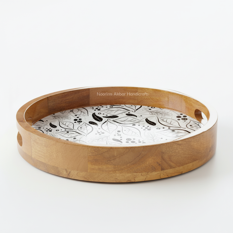 Bandejas de Madera Rústicas Personalizadas para Servir Té, con Asas, Ecológicas, para Decoración de Bodas, Hoteles y Cocinas, Redondas, con Diseño Temático, Venta al por Mayor