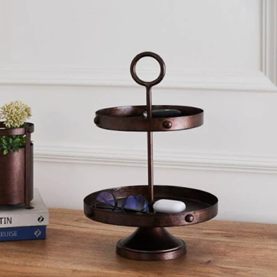 Soportes de pastel de metal de doble placa de efecto rústico para decoración de bodas a precio al por mayor Soporte de pastel de lujo para fiestas y eventos