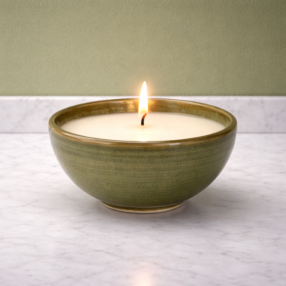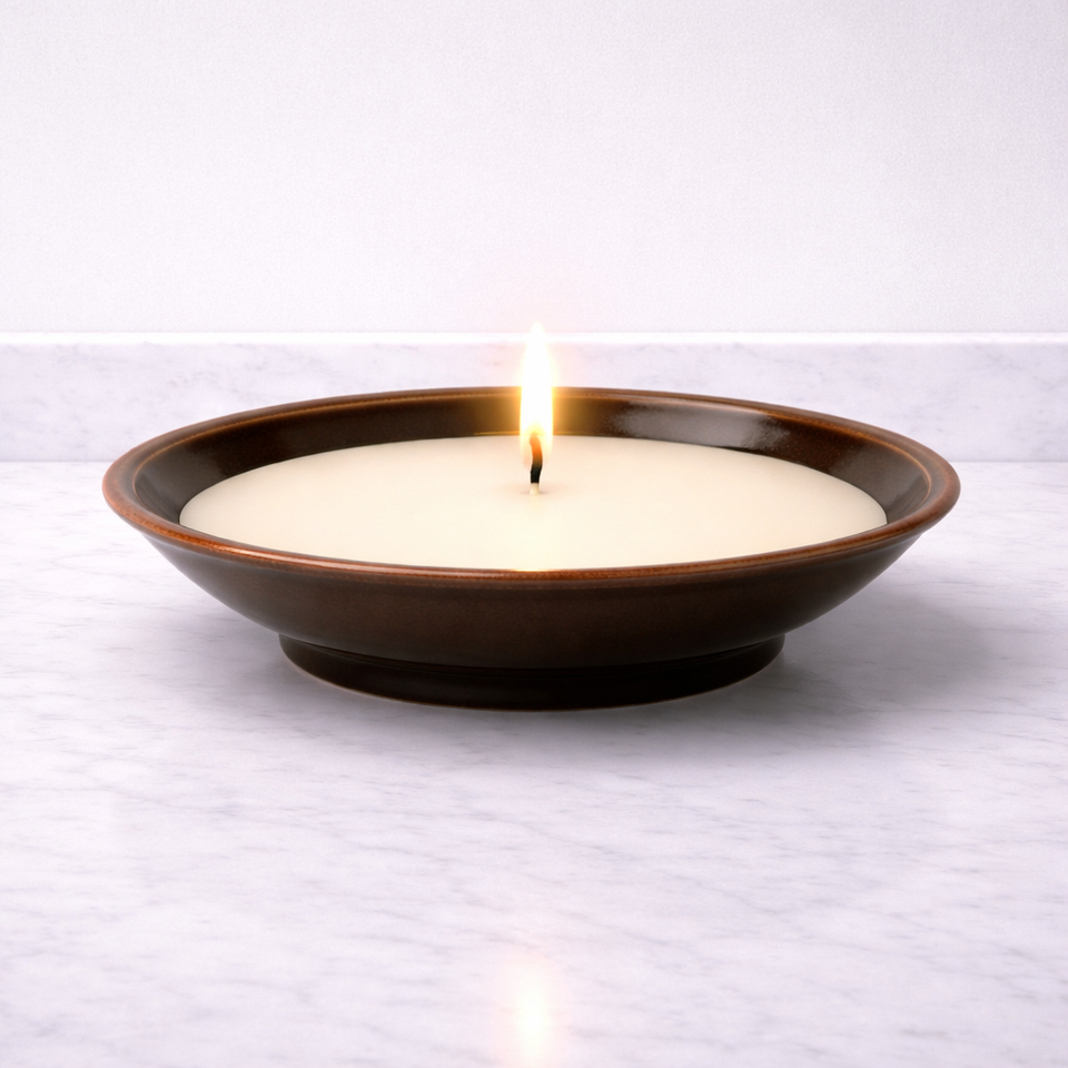 Recipiente de cerámica rústico para velas, tipo cuenco ancho y poco profundo, con esmalte brillante, resistente al calor, duradero, reutilizable, para una sola vela, decorativo.