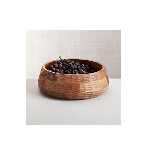 Tazón de madera estilo rústico para servir ensaladas, frutas y como decoración de mesa en cocinas tradicionales.