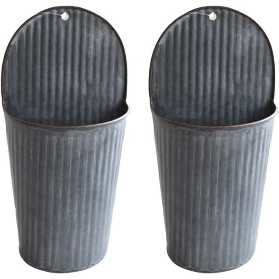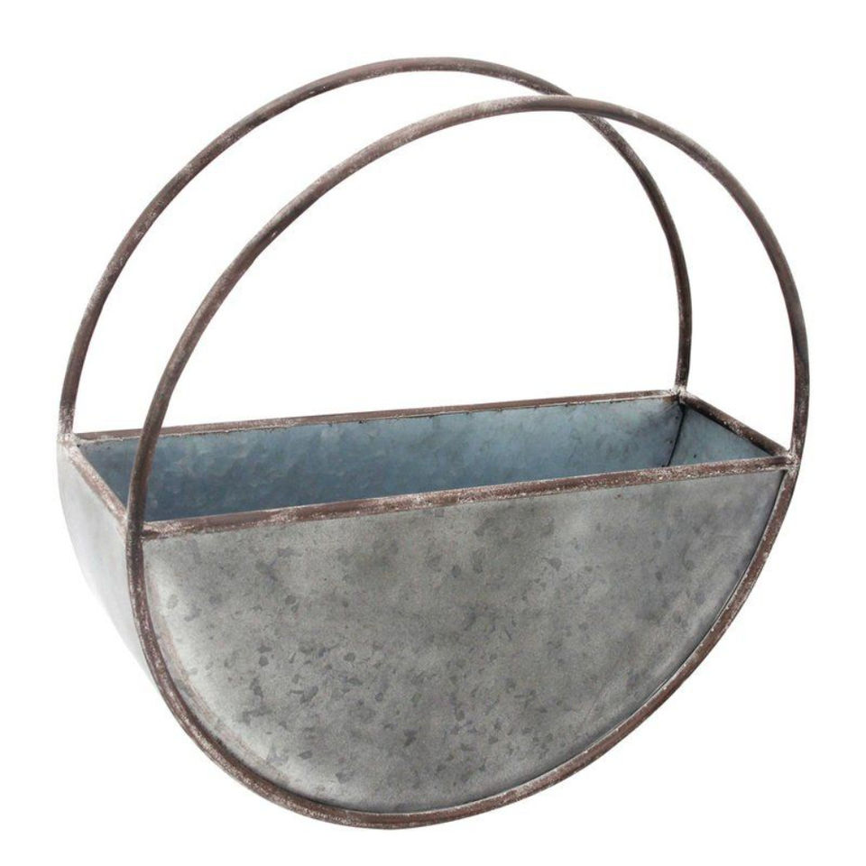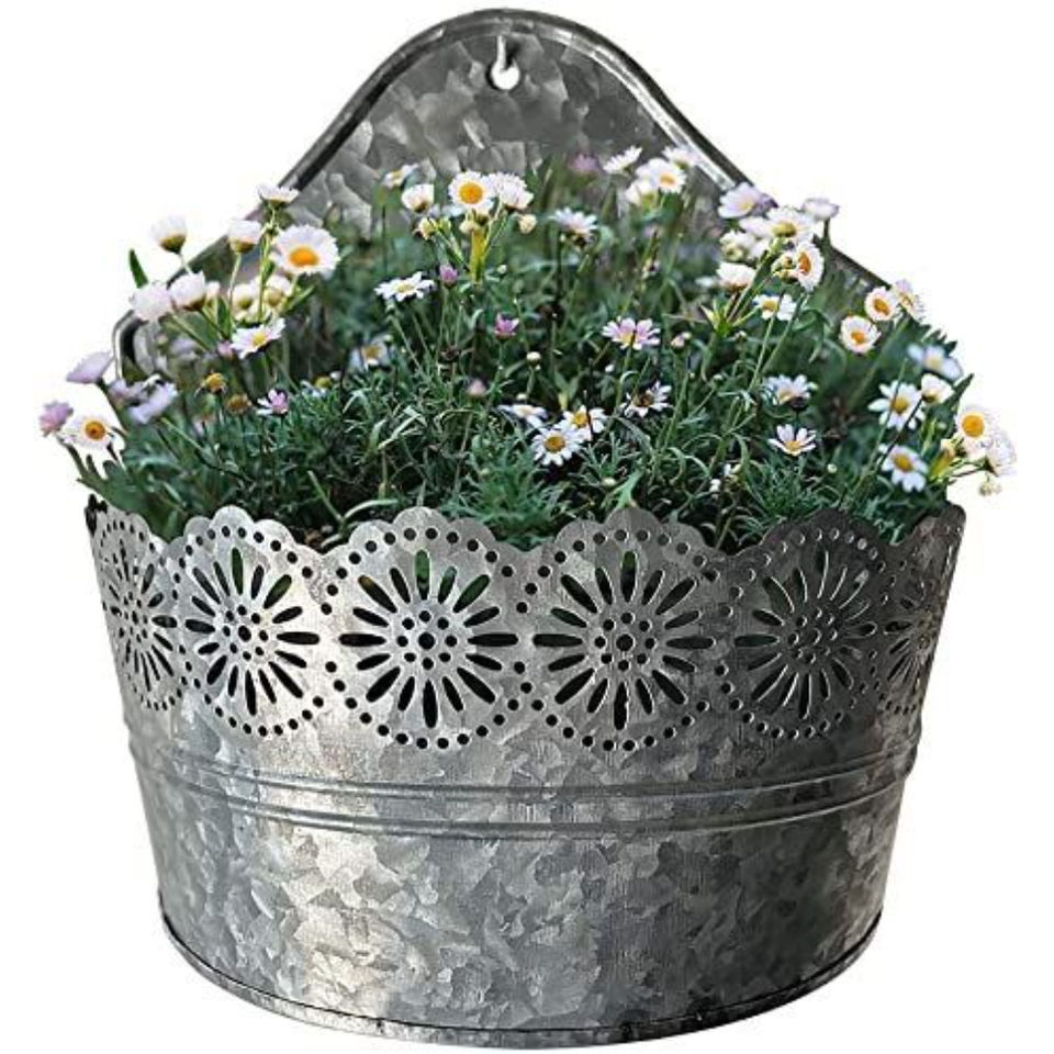 Maceta Colgante de Pared Circular de Metal Galvanizado Estilo Rústico, Decoración de Jardín de Hierro para Interiores y Exteriores, Maceta con Colgador de Cuerda