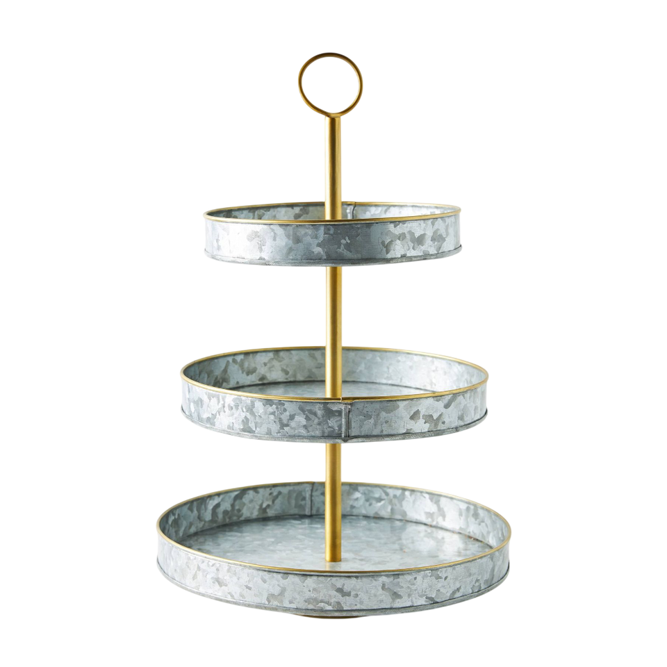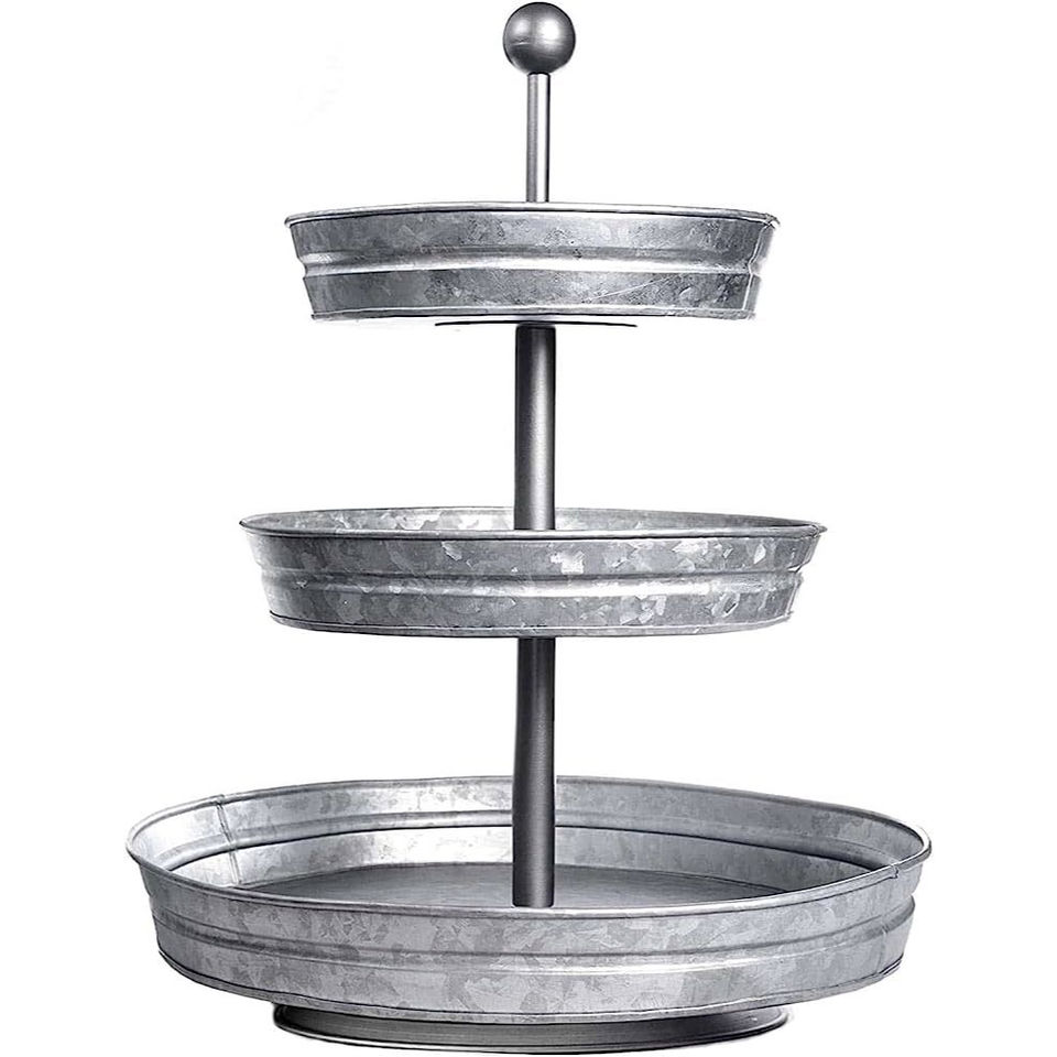 Bandeja de Servir de Metal Galvanizado de 3 Niveles, Estilo Rústico, Soporte de Acero Resistente, Plato Redondo para Exhibir Cupcakes, Postres y Aperitivos