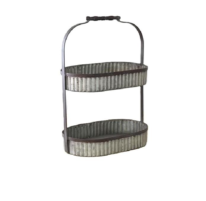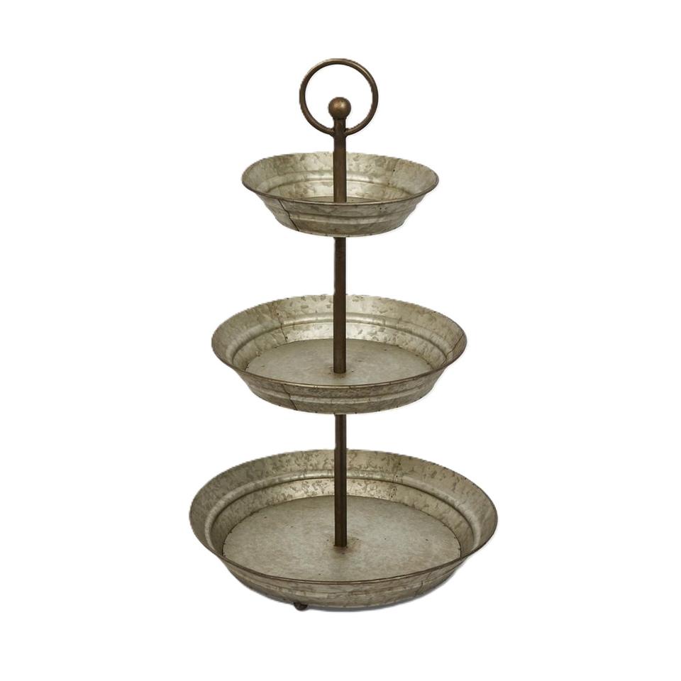Soporte para Pastel de Metal Galvanizado Estilo Rústico con Base de Madera, Exhibidor Redondo para Postres, Servidor de Cupcakes Estilo Vintage