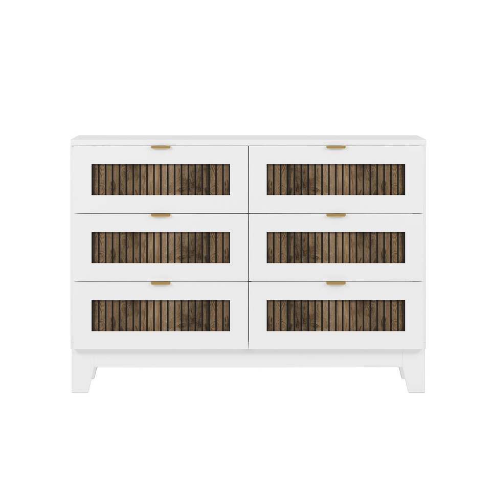 Armario de almacenamiento blanco de madera de 6 cajones estilo granja rústica con manijas de metal para dormitorio