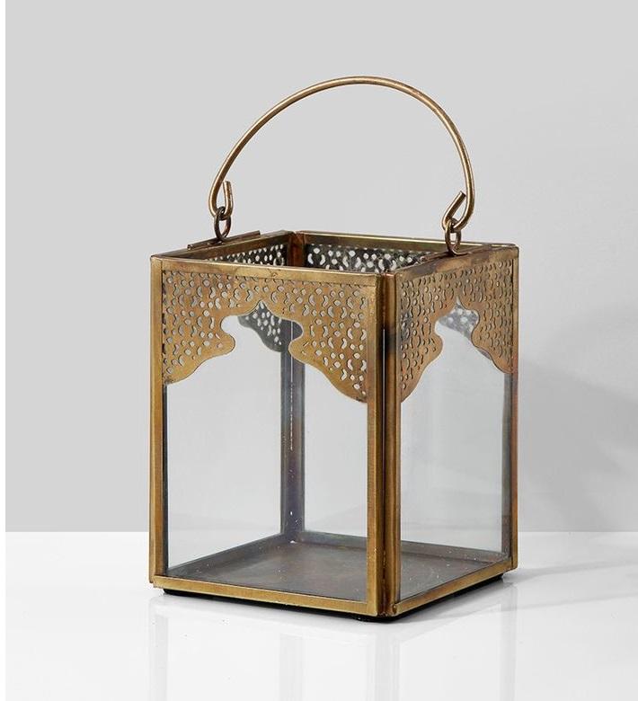 Farol marroquí de metal con acabado rústico para decoración de casas de campo, que agrega iluminación cálida y un atractivo exótico vintage.