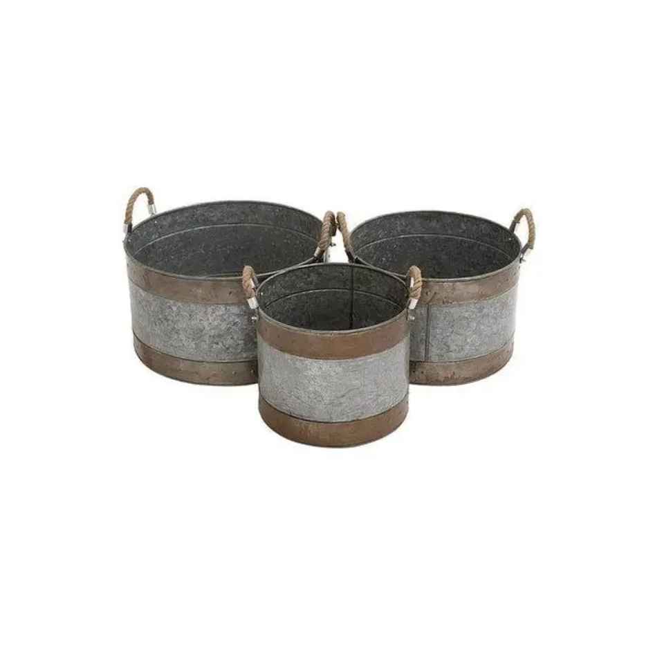 Cubos de Metal Galvanizado Rústicos con Asas de Cuerda, Decorativos Estilo Granja Vintage, para Almacenamiento, Macetas para Hogar, Jardín y Patio