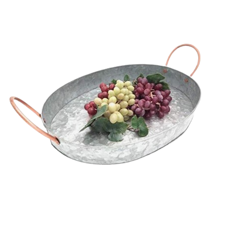 Bandeja de servicio de metal galvanizado rústico de nueva llegada con mango de cuerda de aspecto elegante fabricado en India
