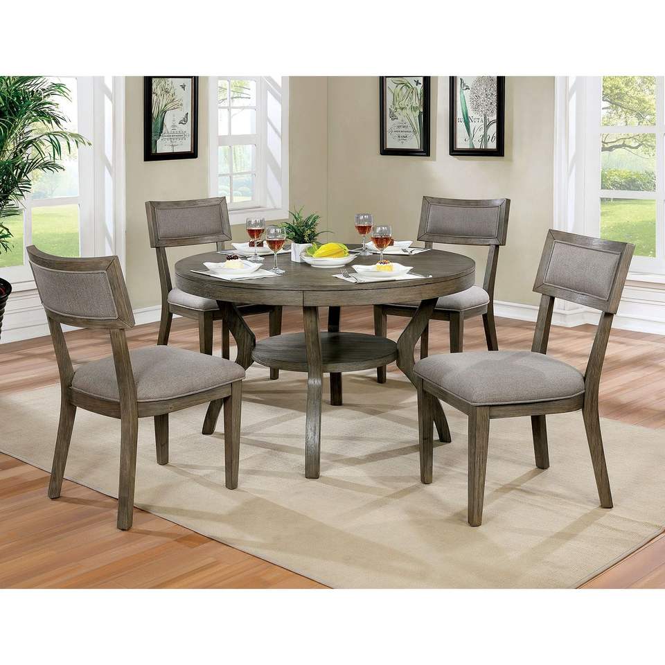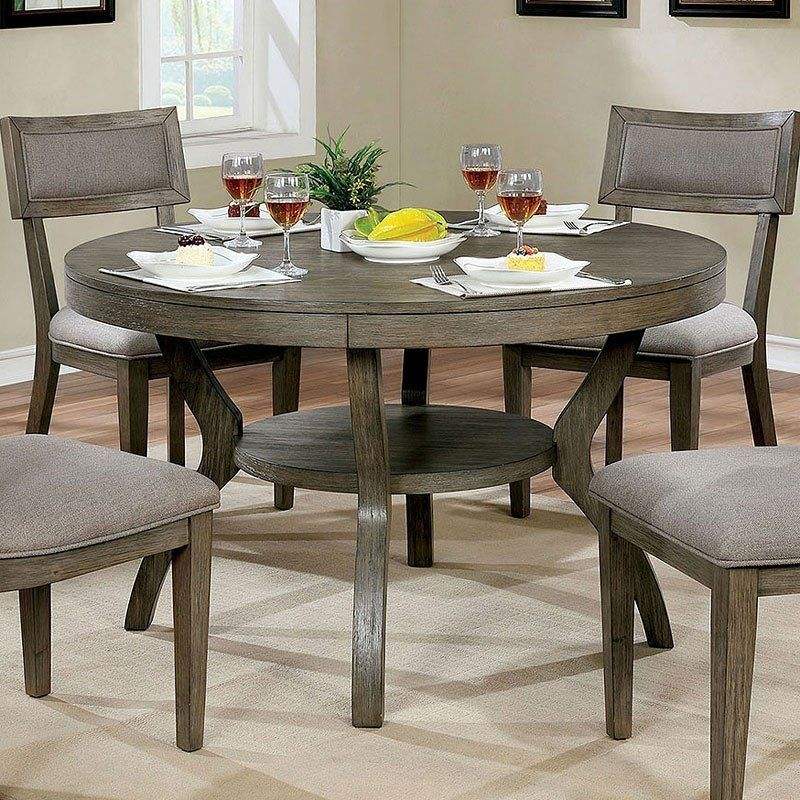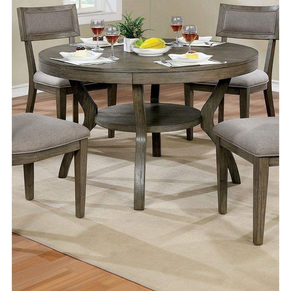 Mesa de Comedor Redonda de Madera Maciza Gris Rústico con Estante, 1 Pieza, Muebles para Comedor
