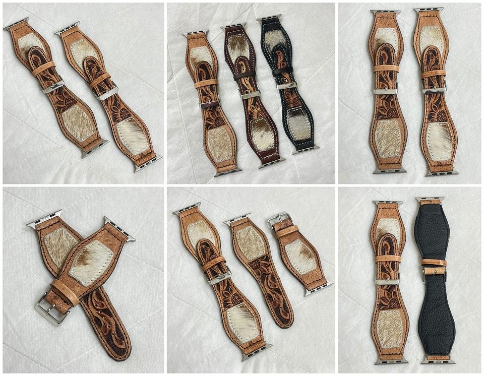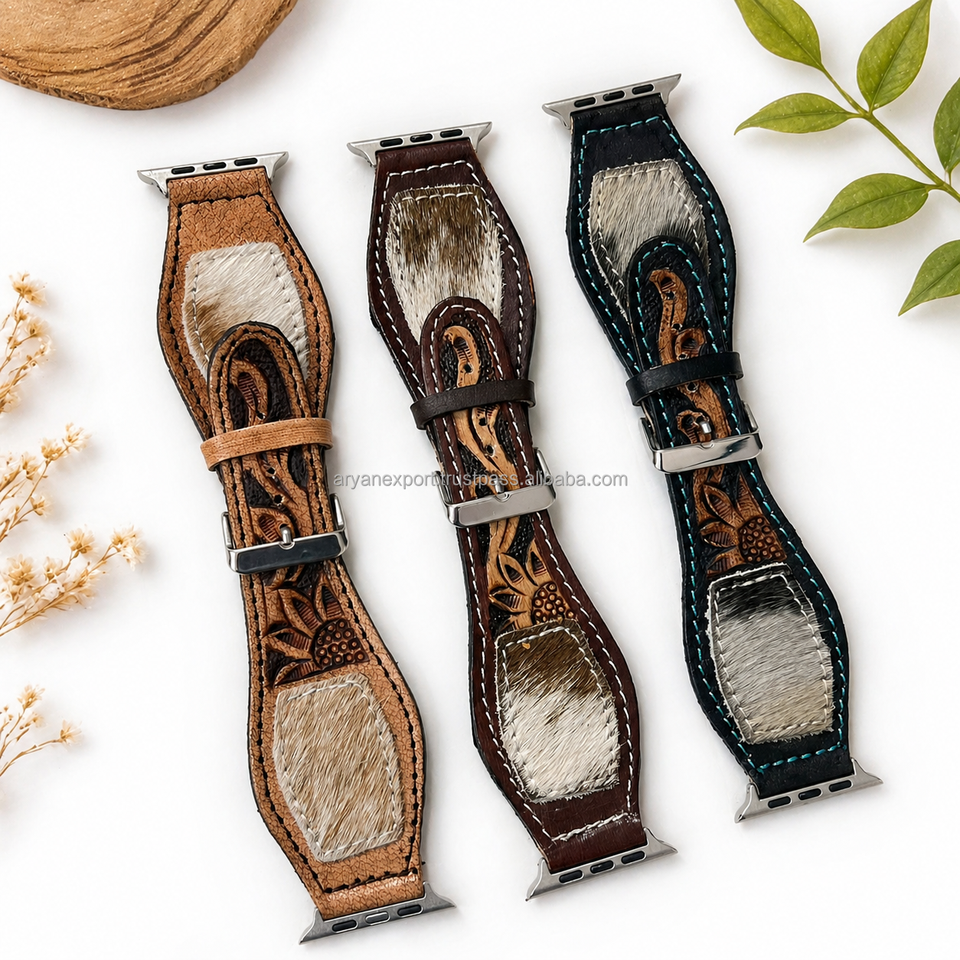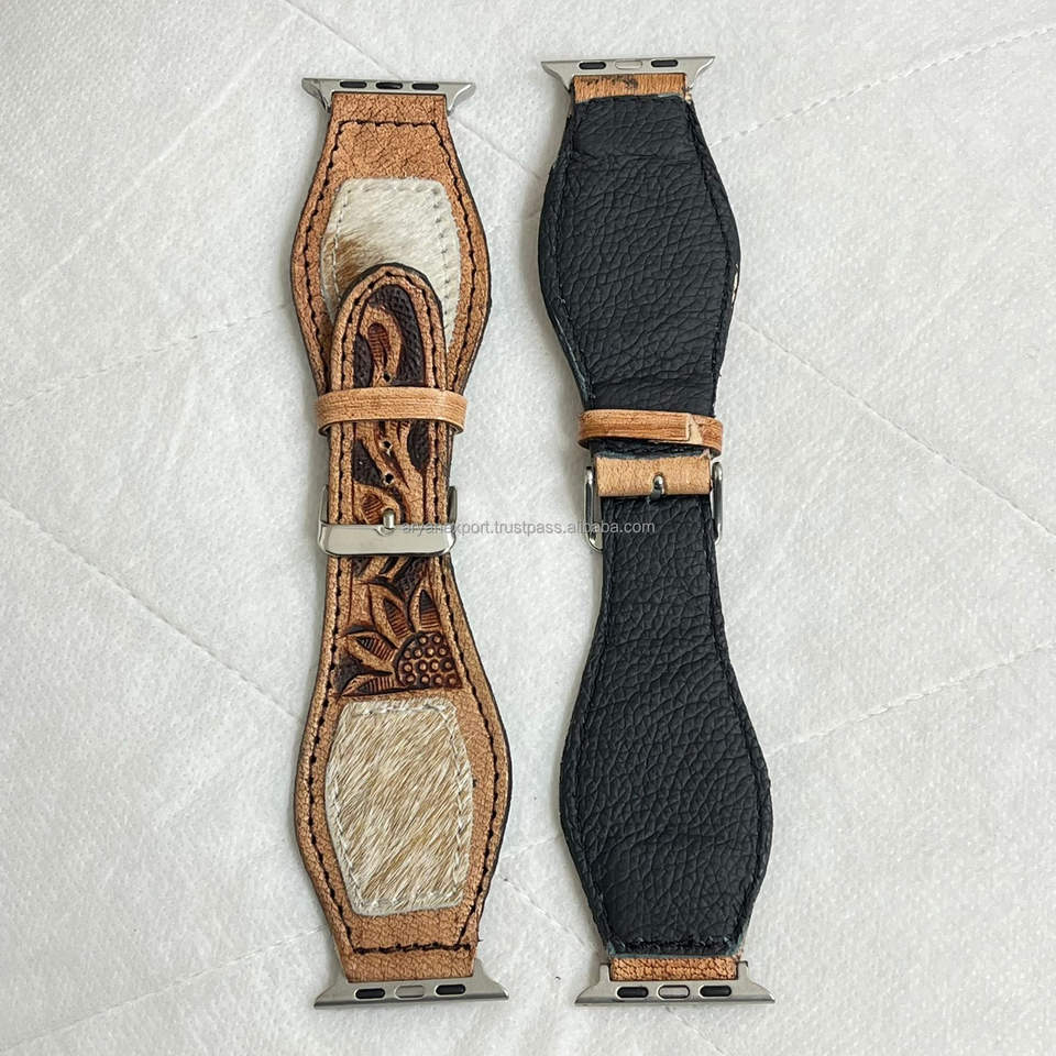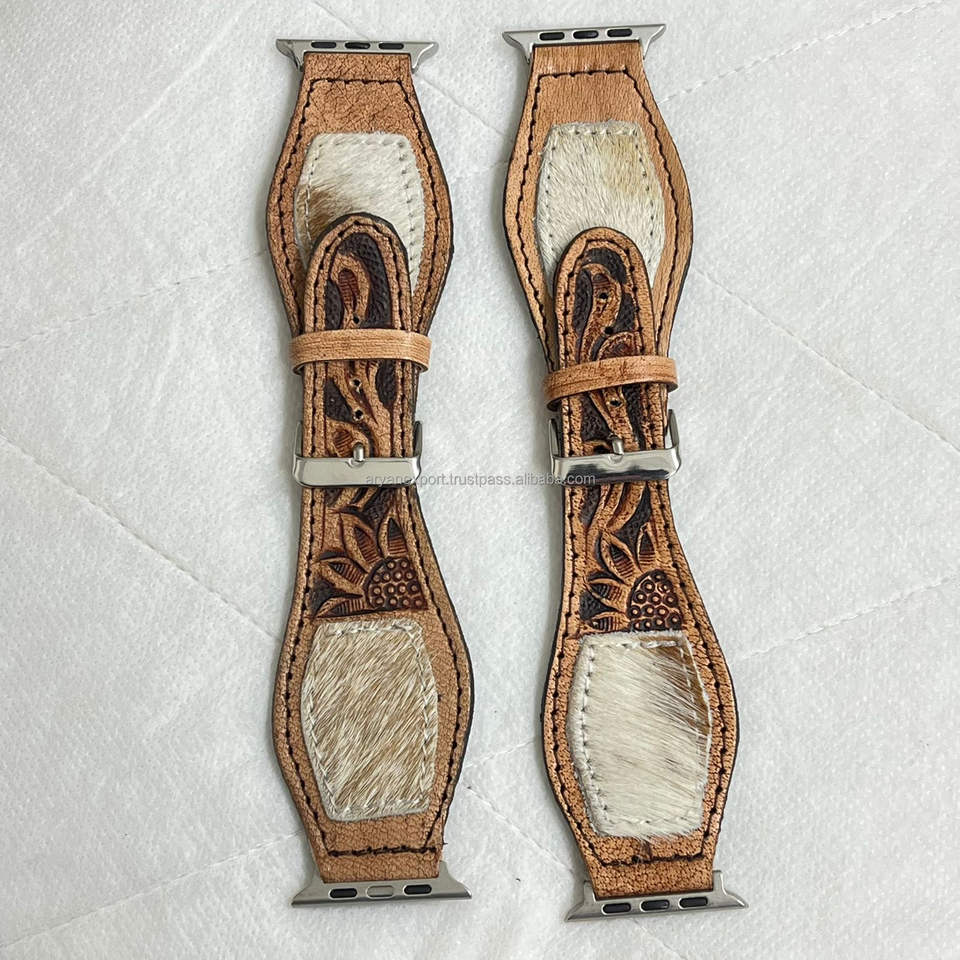 Correas de reloj de cuero de vaca genuino con herramientas florales compatibilidad con acentos de pelo para un estilo occidental audaz