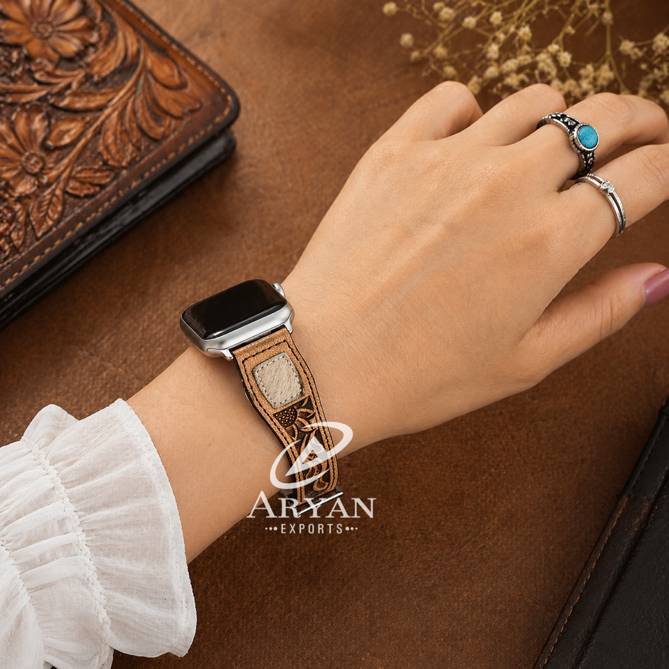 Hand Tooled Leather Smart Watch Band
