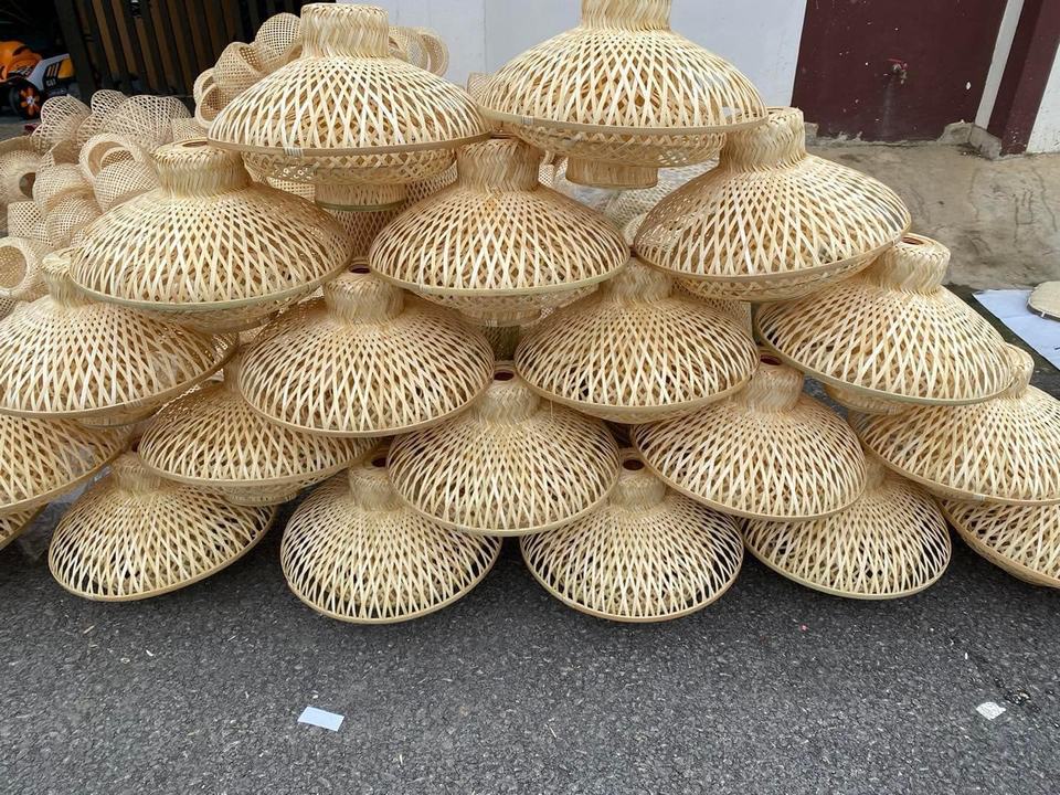 Lámpara de bambú hecha a mano rústica Iluminación de material natural para restaurante y sala de estar