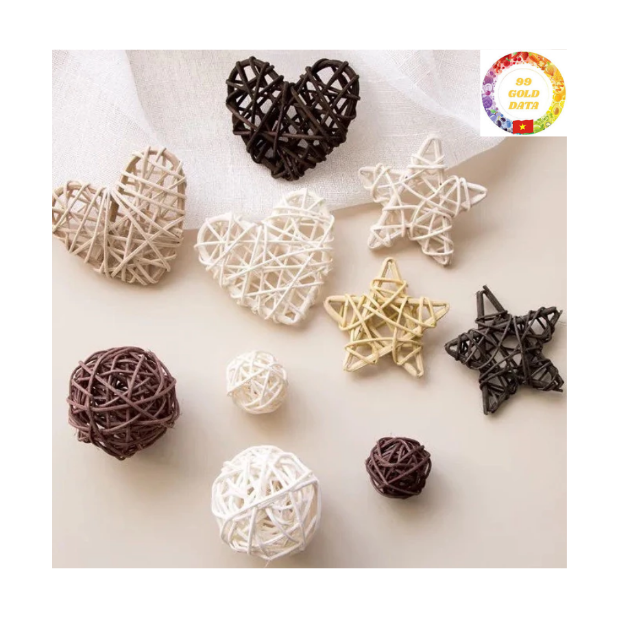 Adornos Rústicos Hechos a Mano de Ratán con Forma de Copo de Nieve y Corazón, Decoración Navideña de Mimbre para Árbol de Navidad, Decoración Rústica para el Hogar