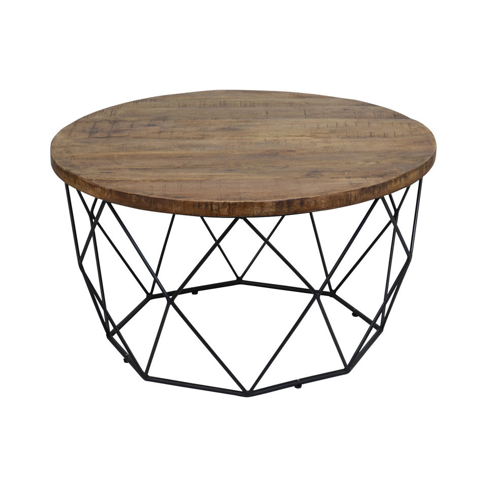 Mesa de cóctel industrial rústica con tapa de madera con patrón de parquet y soporte de color negro de metal Mesa de centro Muebles industriales
