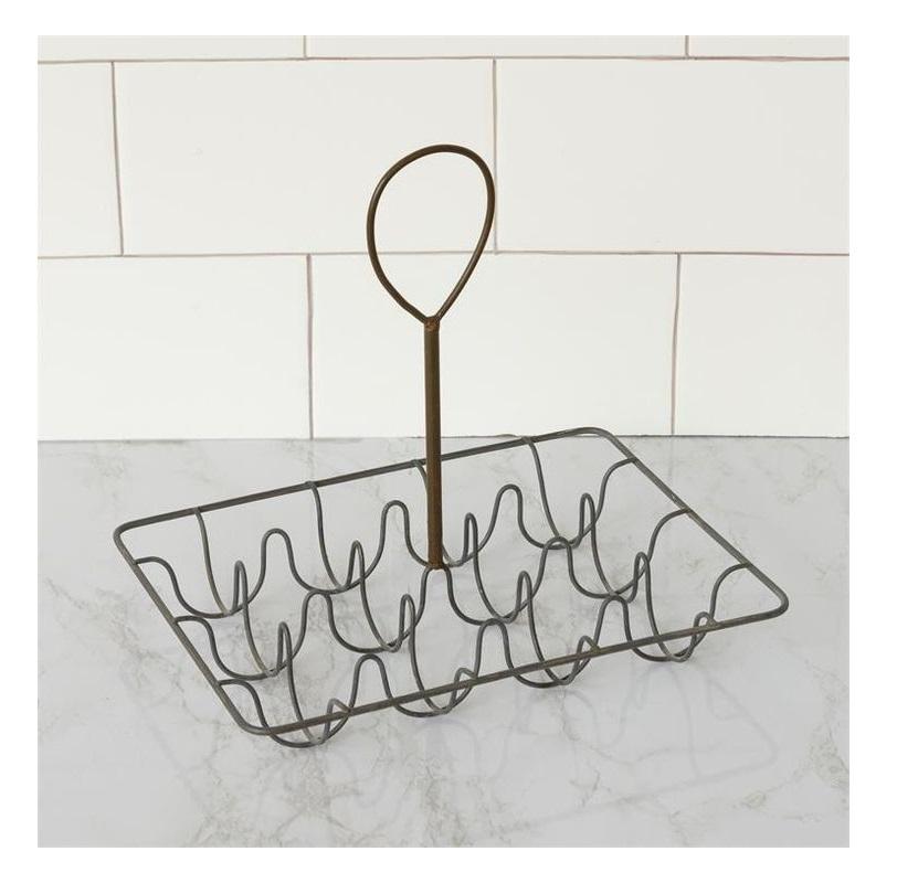 Soporte para huevos de hierro rústico con superficie desgastada, perfecto para casas de campo, granjas y decoración de cocina clásica