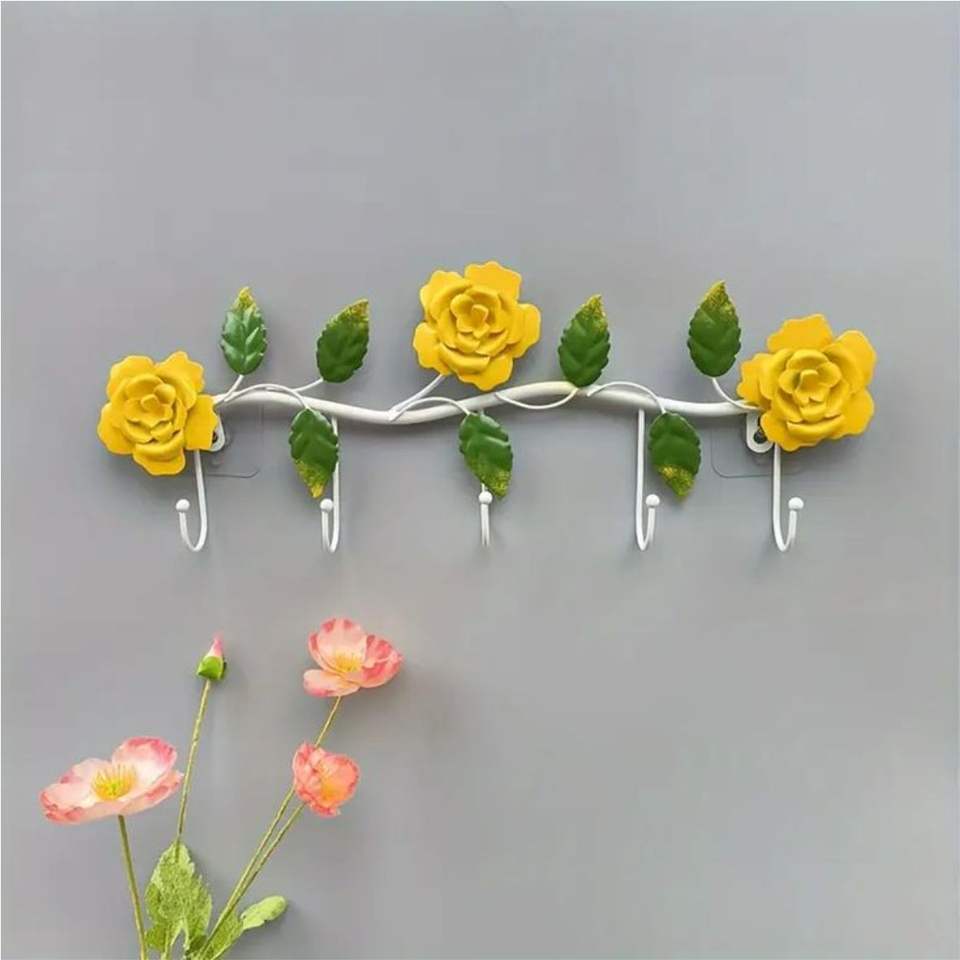 Gancho de Pared Floral Rústico de Hierro, Colgador Decorativo de Metal con Forma de Flor, Perchero de Pared para Abrigos y Sombreros | Herrajes Decorativos para el Hogar Estilo Shabby Chic
