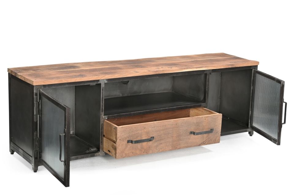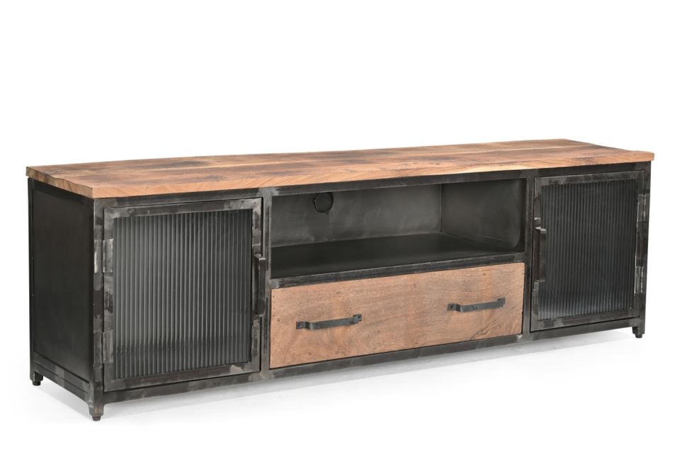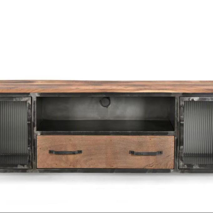 Mueble para TV rústico de hierro/WD con puerta de vidrio acanalado